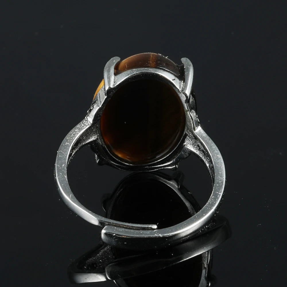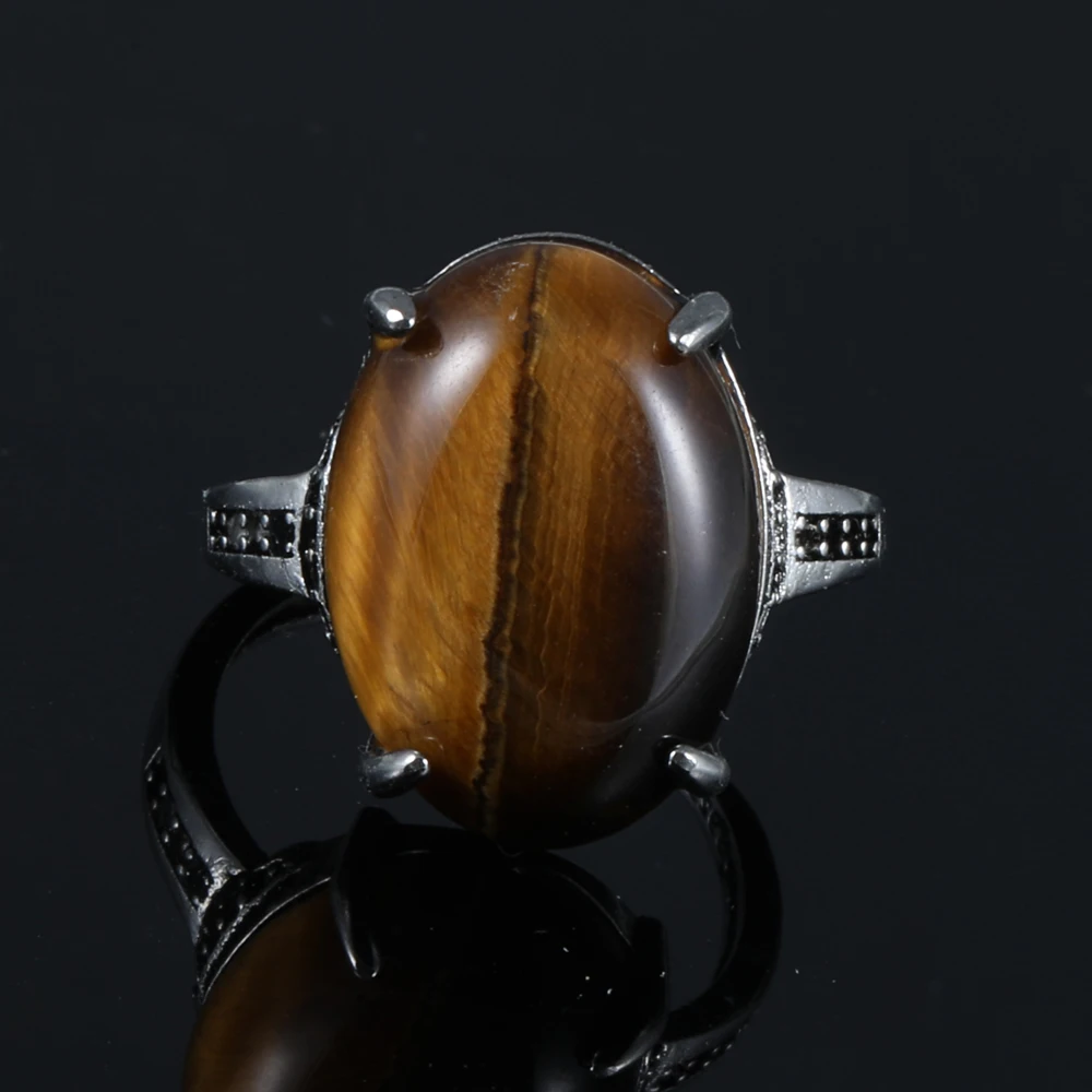 100% natural gemstone tiger-eye Retro style adjustable ring copper-plated silver ring for women men jewelry gift