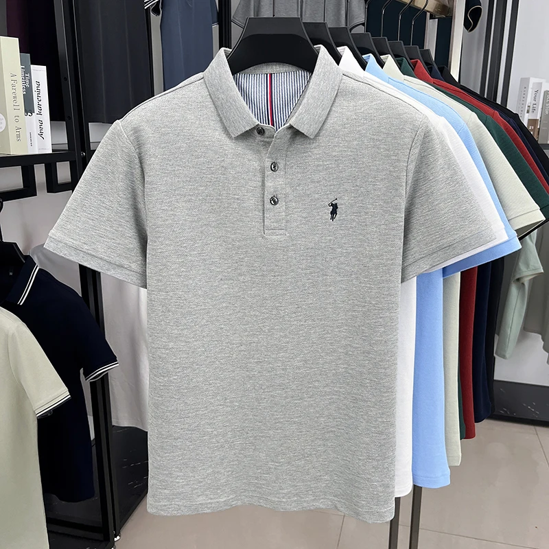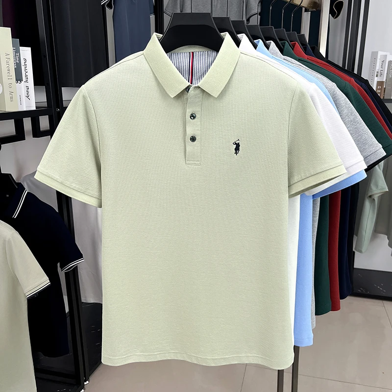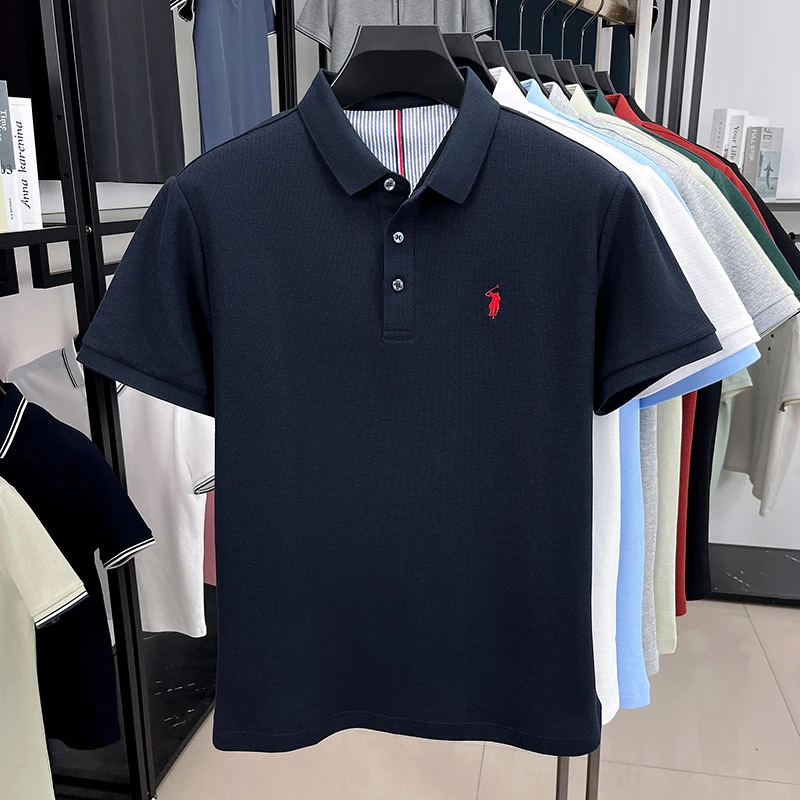 قميص بولو رجالي بأكمام قصيرة من القطن الخالص 100%، قميص بولو صيفي أنيق من العلامة التجارية الراقية، قميص جولف مطرز برسومات المهر، تي شيرت عمل غير رسمي