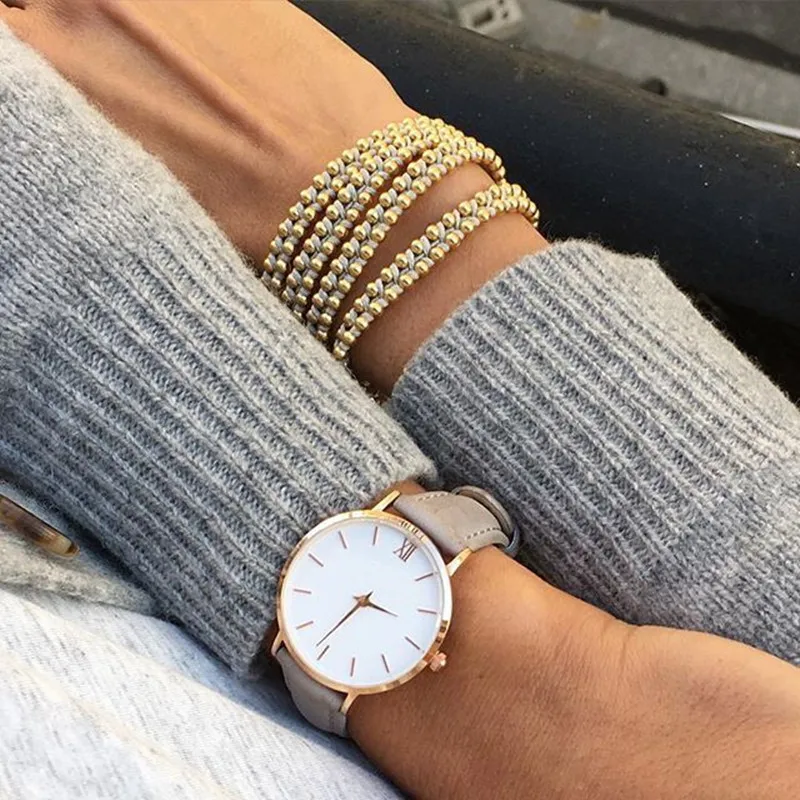 موضة عادية ساعات بسيطة المرأة حلقة من جلد ساعة كوارتز السيدات الساعات Relogio Feminino Montre فام Zegarek Damski