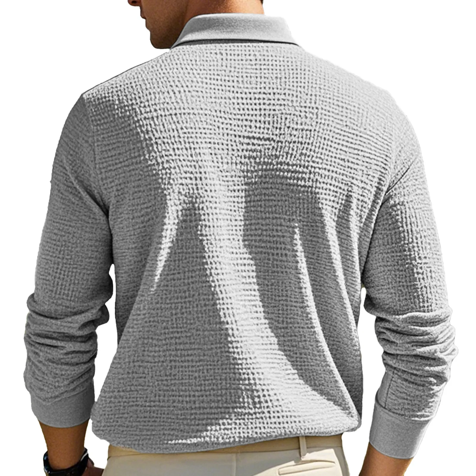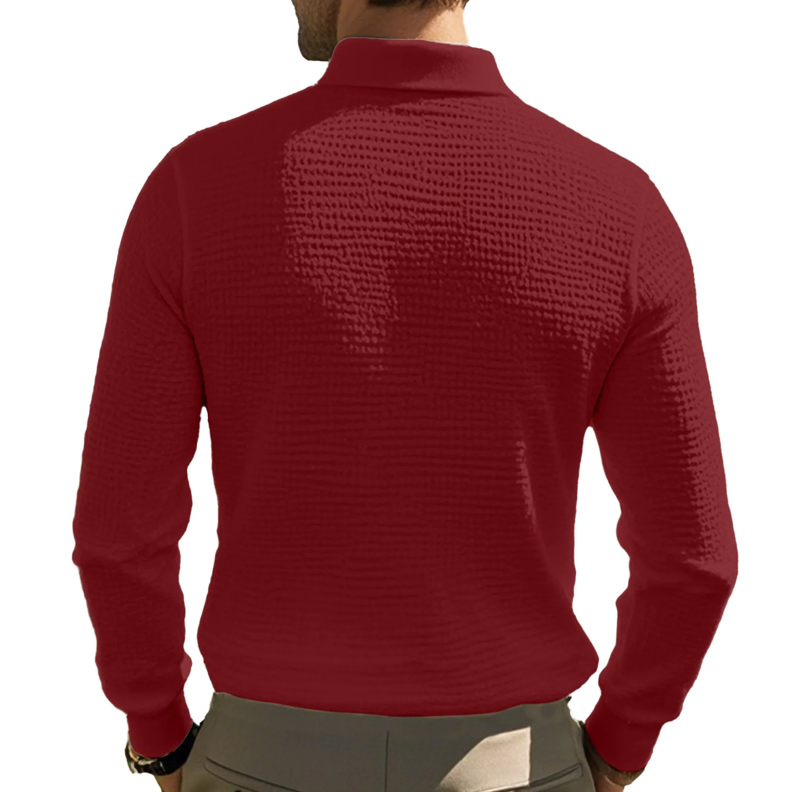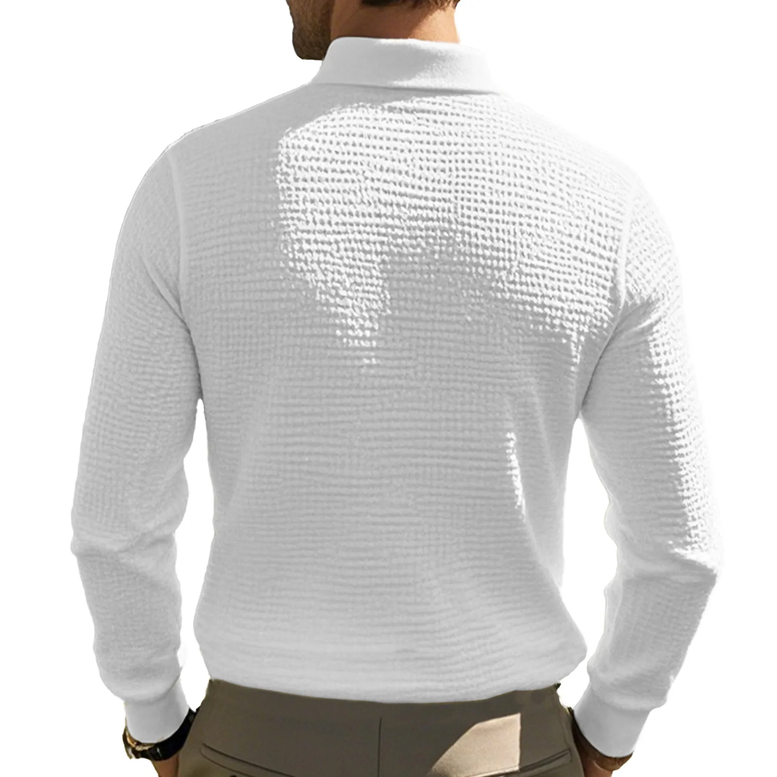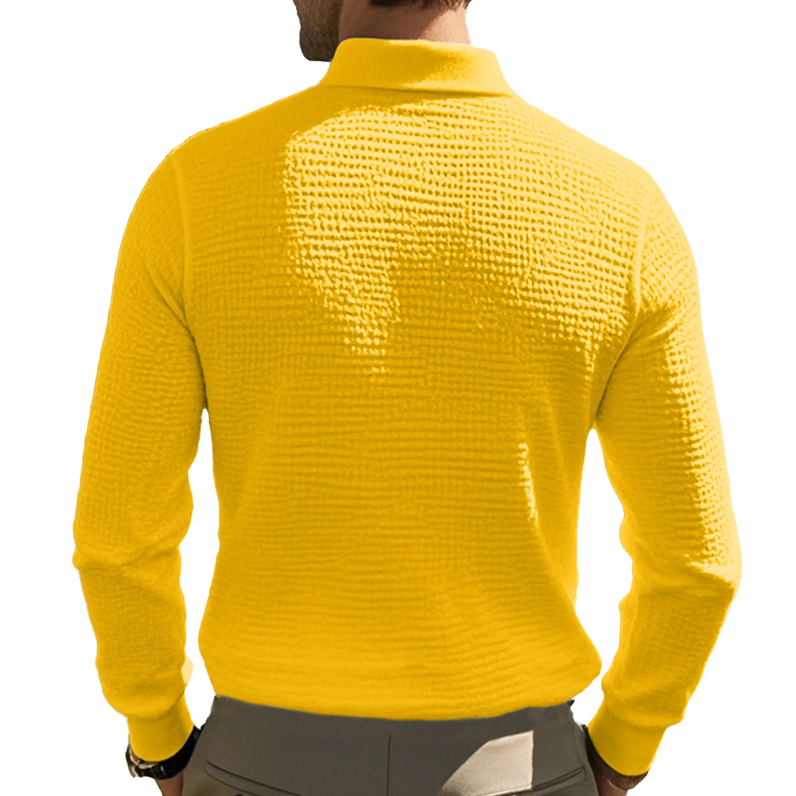 قميص بولو رجالي جديد عابر للحدود خريف وشتاء 2024 بأكمام طويلة وأزرار وياقة وافل