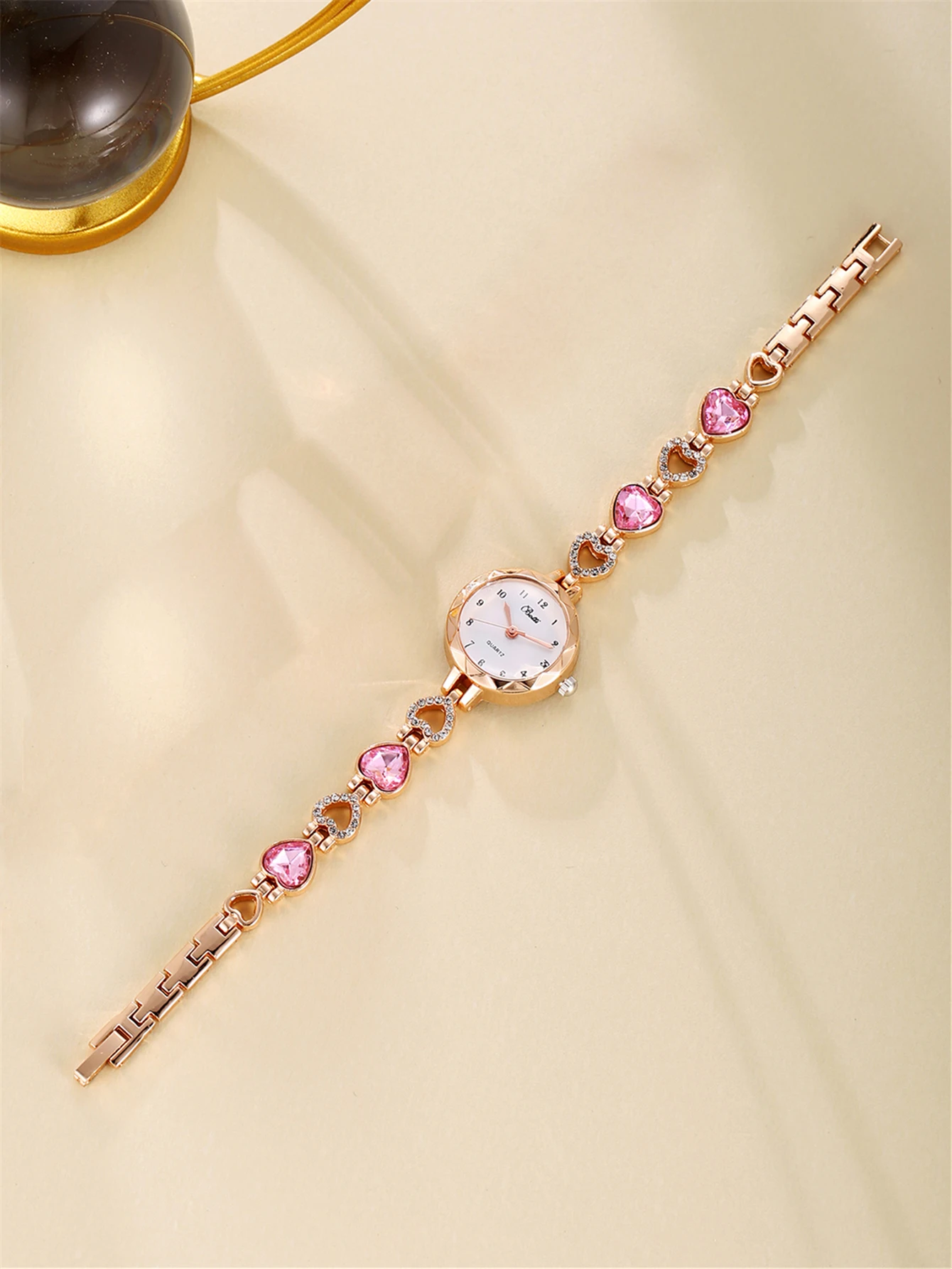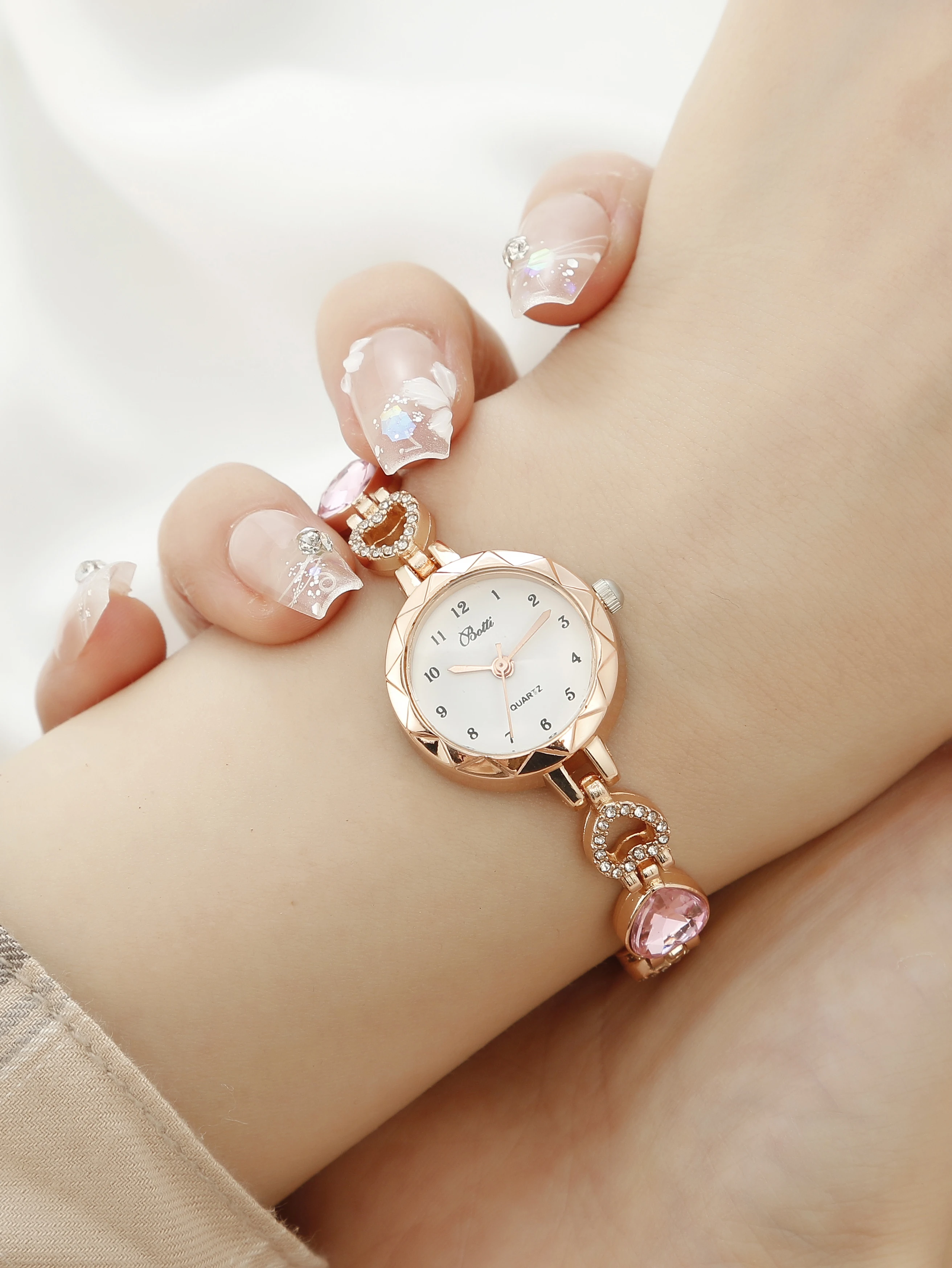 سوار أنيق وعصري من الذهب الوردي والفولاذ، مصنوع من الكوارتز، للنساء