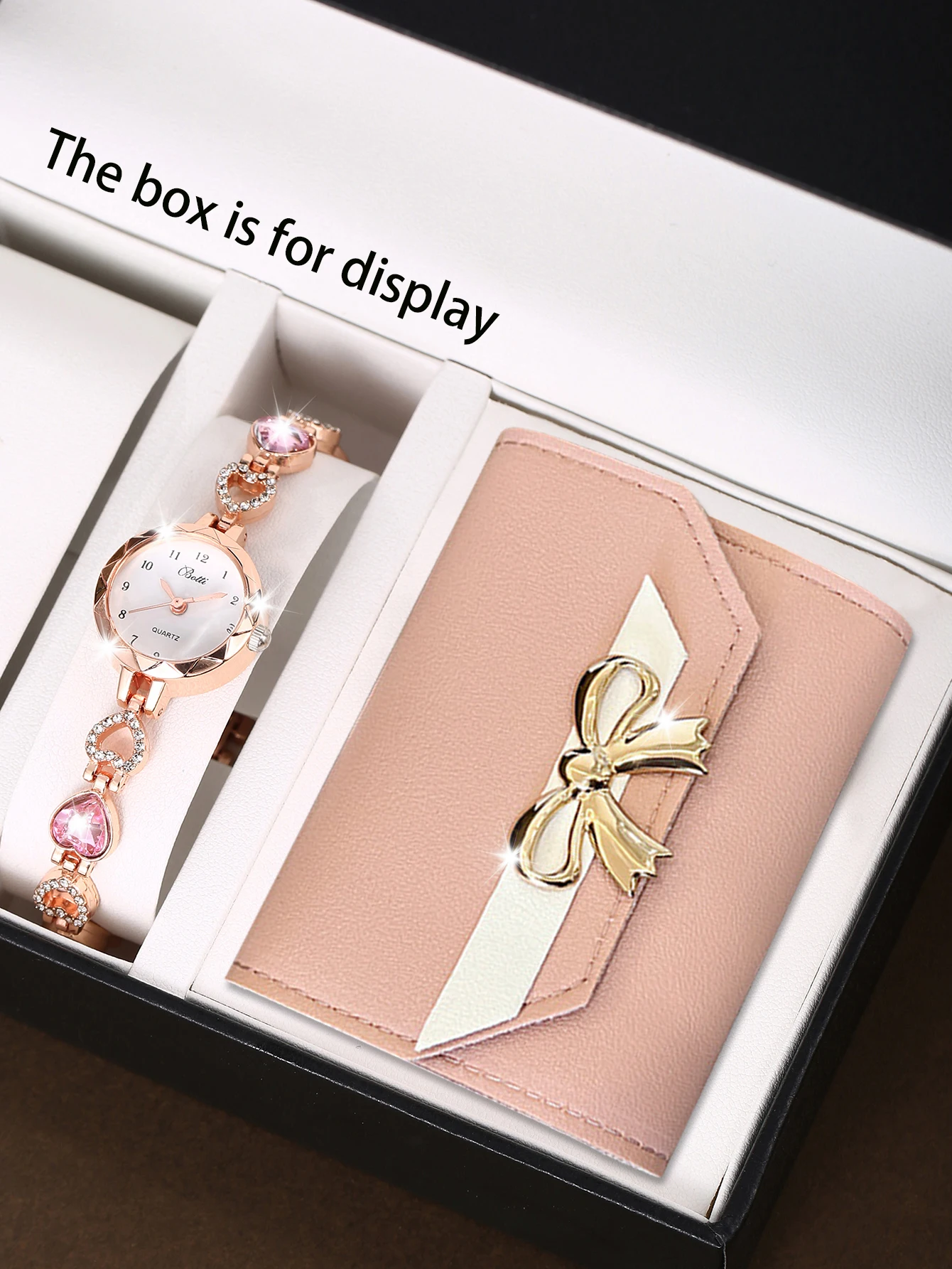 قطعتان من سوار ساعة كوارتز فاخر وبسيط للنساء، بالإضافة إلى محفظة صغيرة وردية اللون لحفظ البطاقات، هدية مثالية لـ