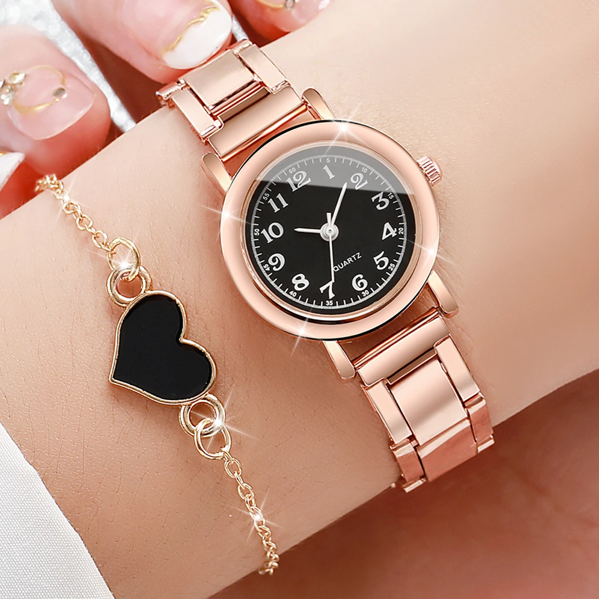 سوار أنيق وعصري من الذهب الوردي والفولاذ، مصنوع من الكوارتز، للنساء
