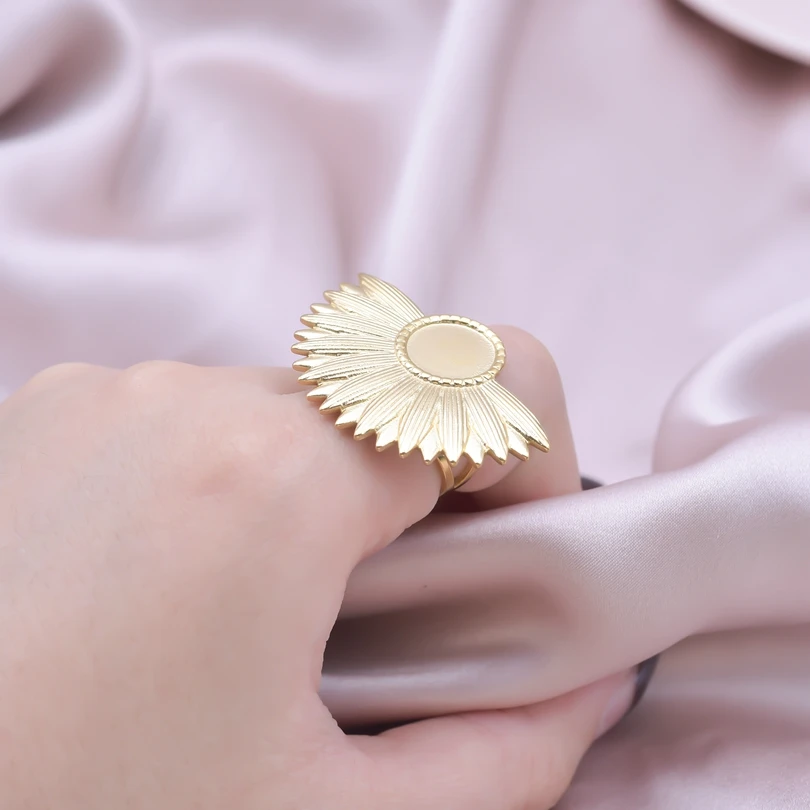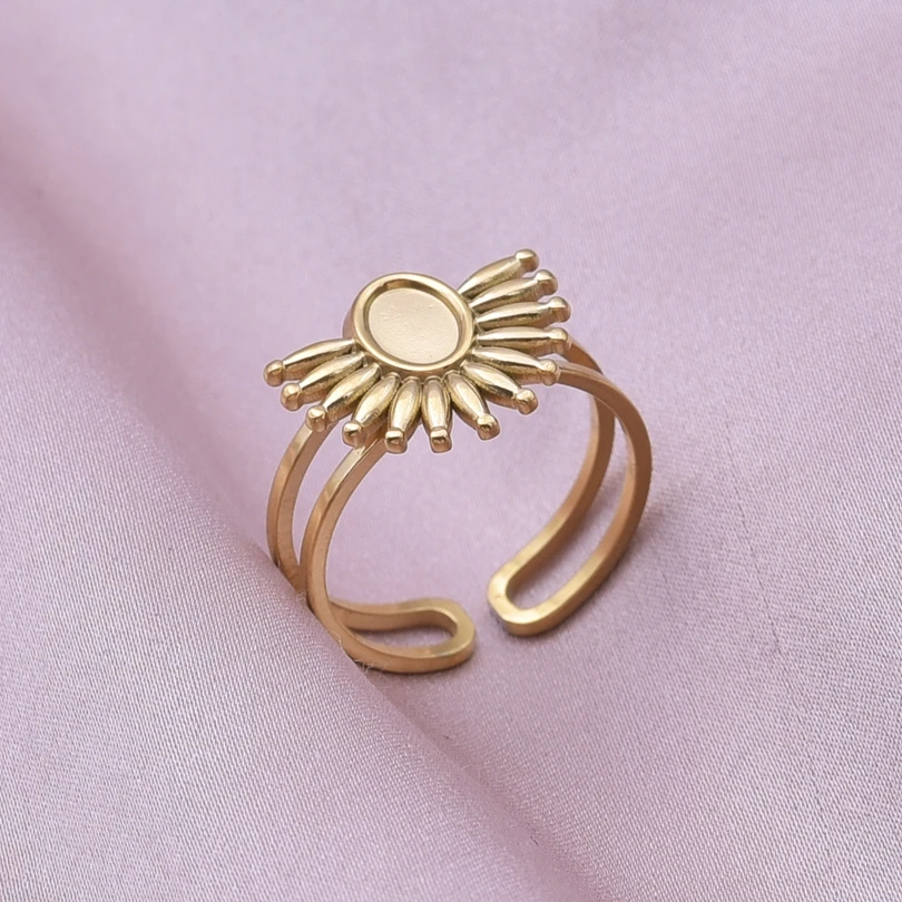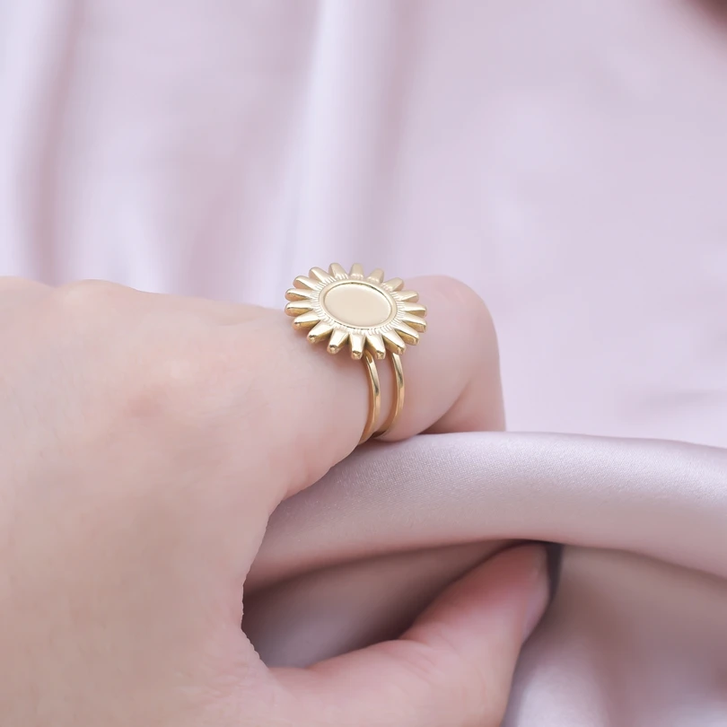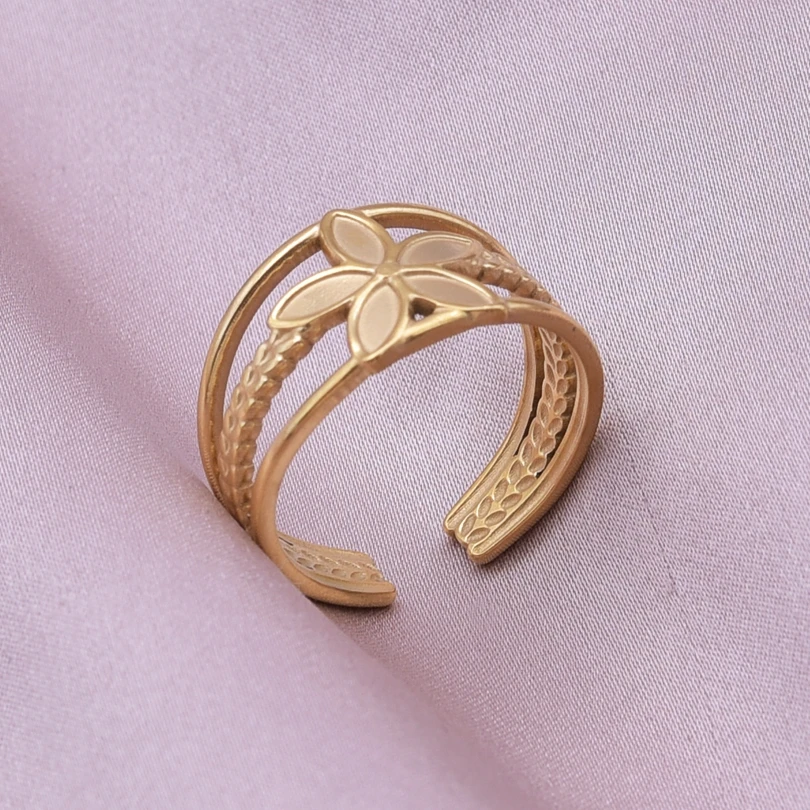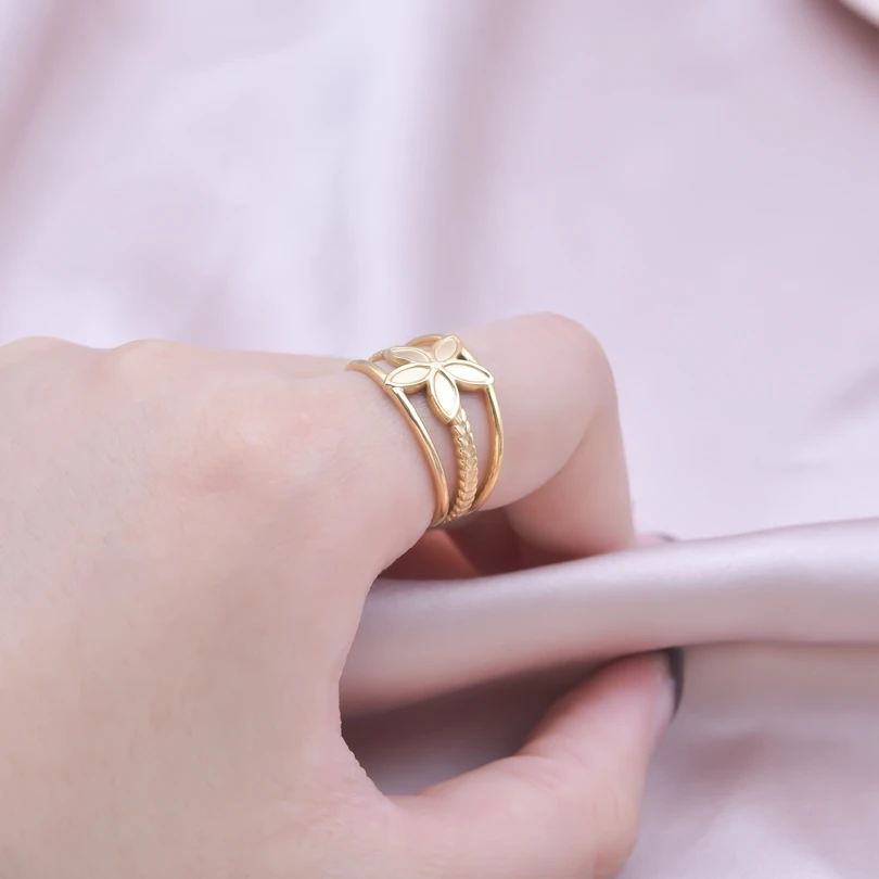 خواتم زهور رقيقة من الفولاذ المقاوم للصدأ بلون ذهبي للنساء، أنيقة وعصرية ومتعددة الاستخدامات، خاتم عريض للأصابع، مجوهرات للارتداء اليومي