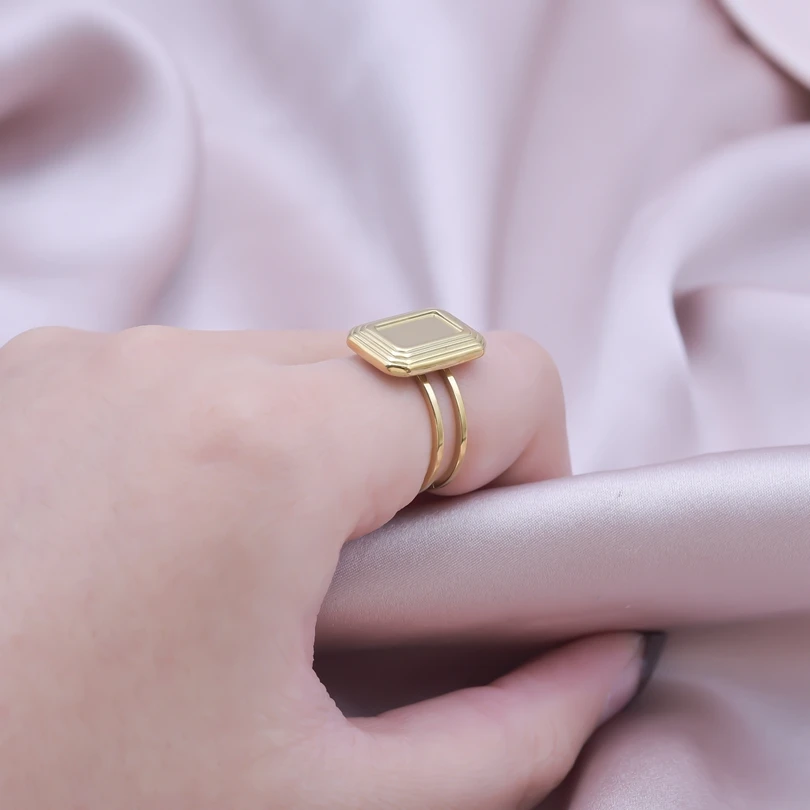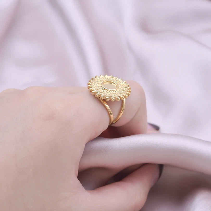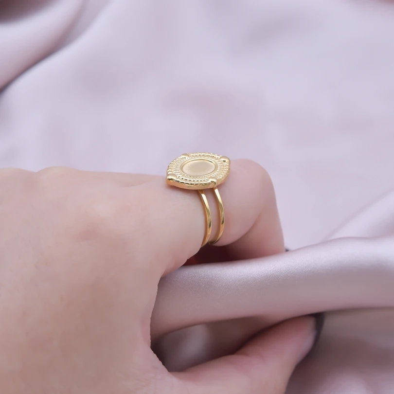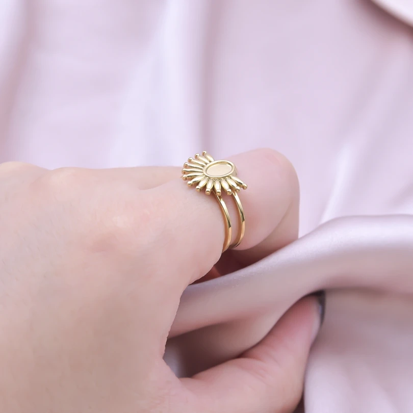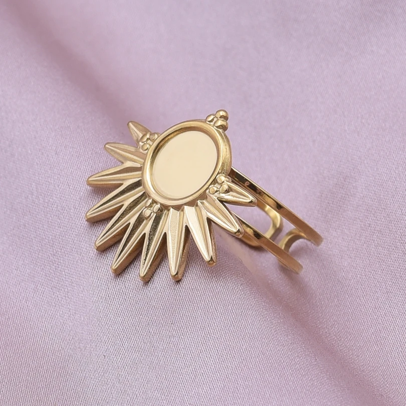 خواتم زهور رقيقة من الفولاذ المقاوم للصدأ بلون ذهبي للنساء، أنيقة وعصرية ومتعددة الاستخدامات، خاتم عريض للأصابع، مجوهرات للارتداء اليومي
