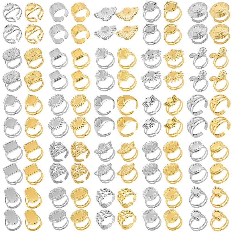 خمس قطع من حلقات قابلة للتعديل مطلية بالذهب ومصنوعة من الفولاذ المقاوم للصدأ، مثالية للنساء، هدية رائعة للفتيات، لا يتغير لونها أبداً.