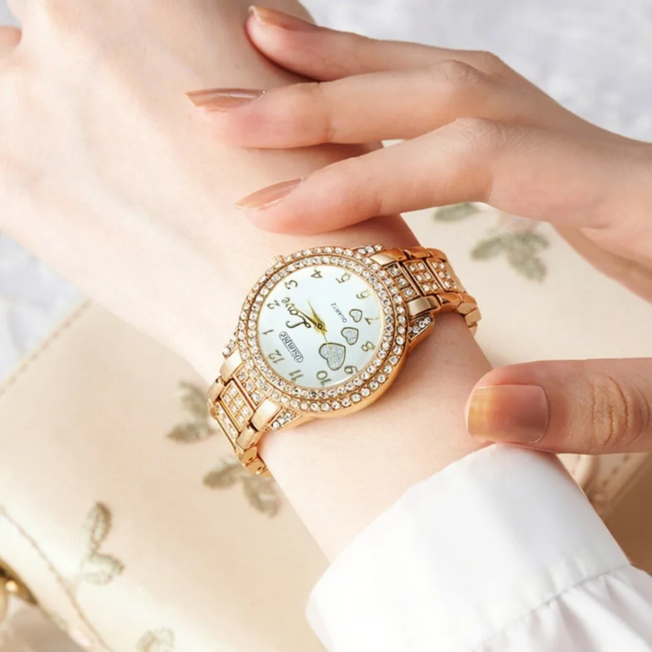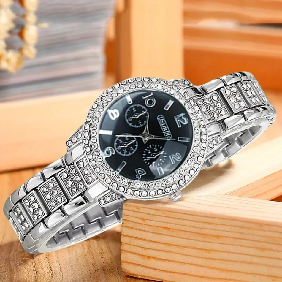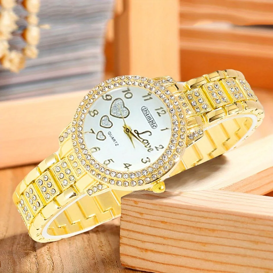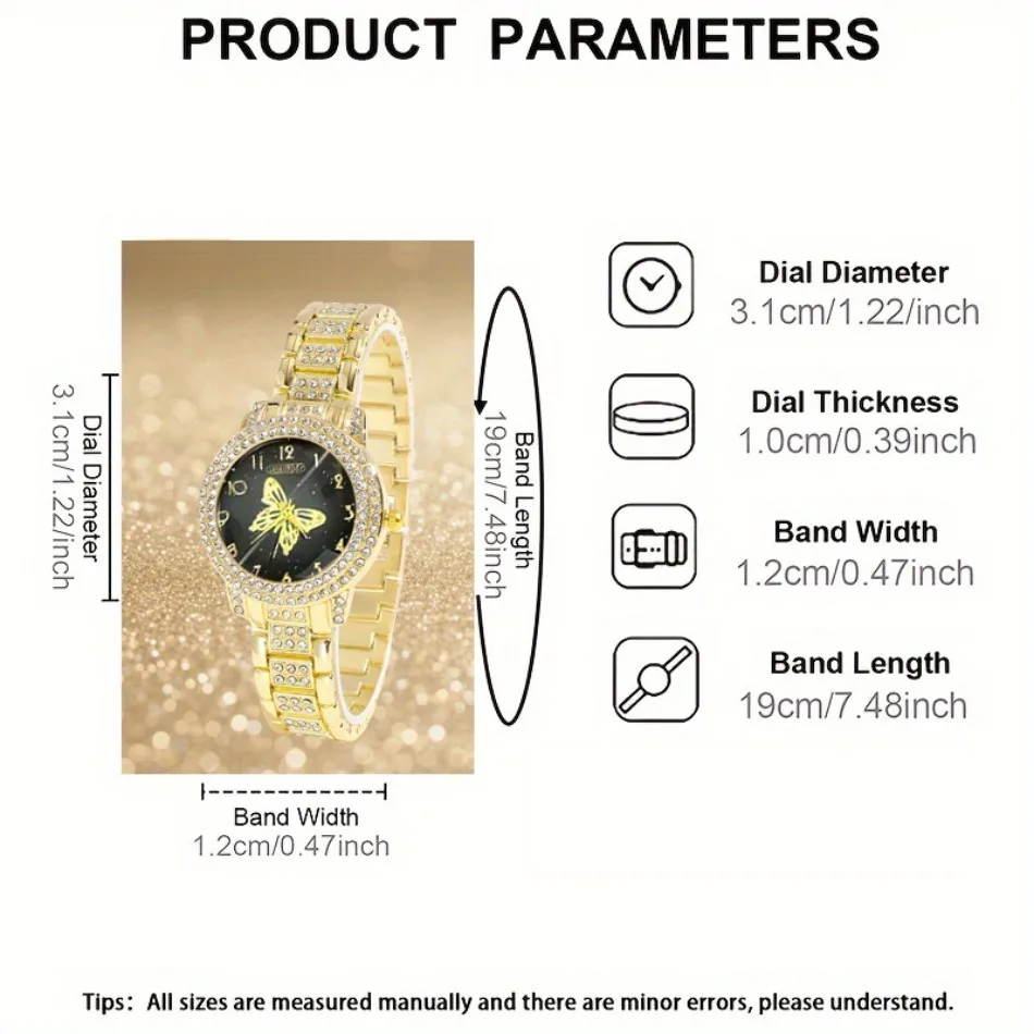 طقم ساعة يد كوارتز أنيقة للسيدات مكون من 6 قطع مع مجوهرات - هدية مثالية للنساء، عيد الحب، تصميم أنيق