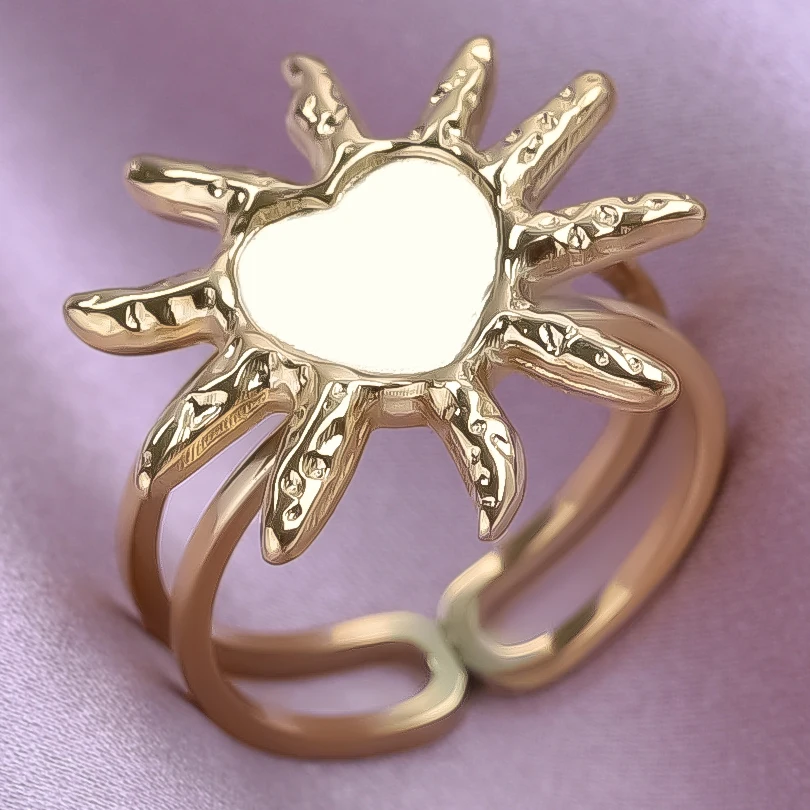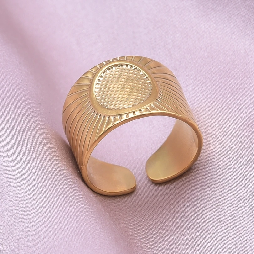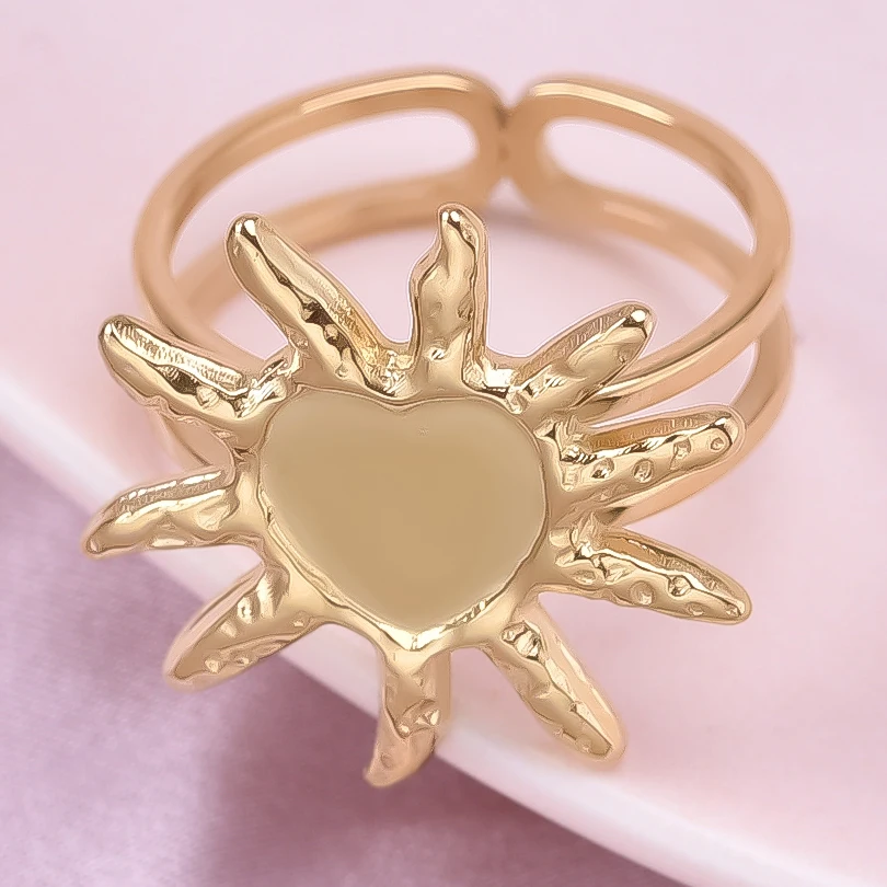 خواتم زهور رقيقة من الفولاذ المقاوم للصدأ بلون ذهبي للنساء، أنيقة وعصرية ومتعددة الاستخدامات، خاتم عريض للأصابع، مجوهرات للارتداء اليومي