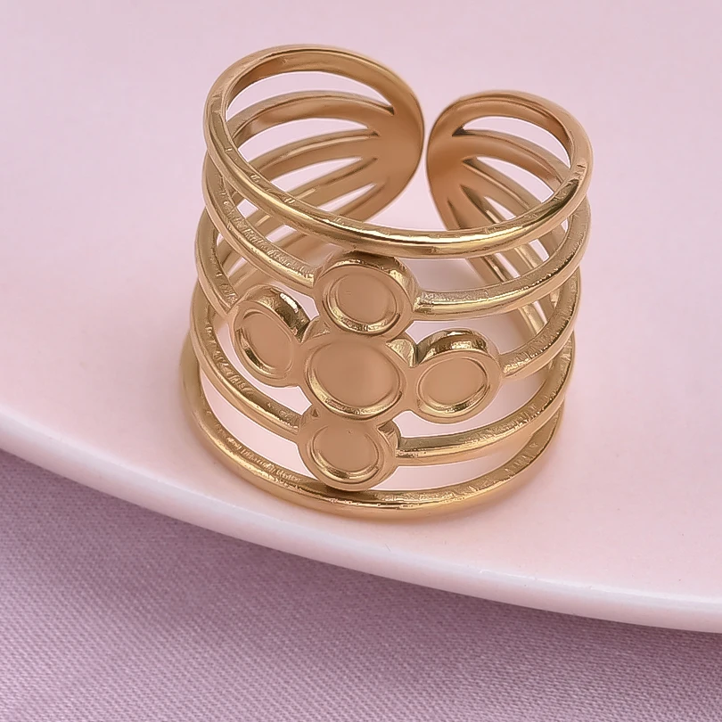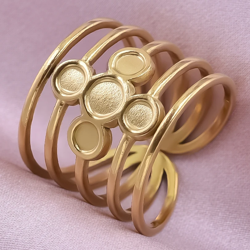 ٦ قطع/عبوة من حلقات مطلية بالذهب بقاعدة من الفولاذ المقاوم للصدأ، خواتم مفاصل فارغة يمكنك صنعها بنفسك للنساء، مجوهرات ساحرة لا يتغير لونها، بيع بالجملة