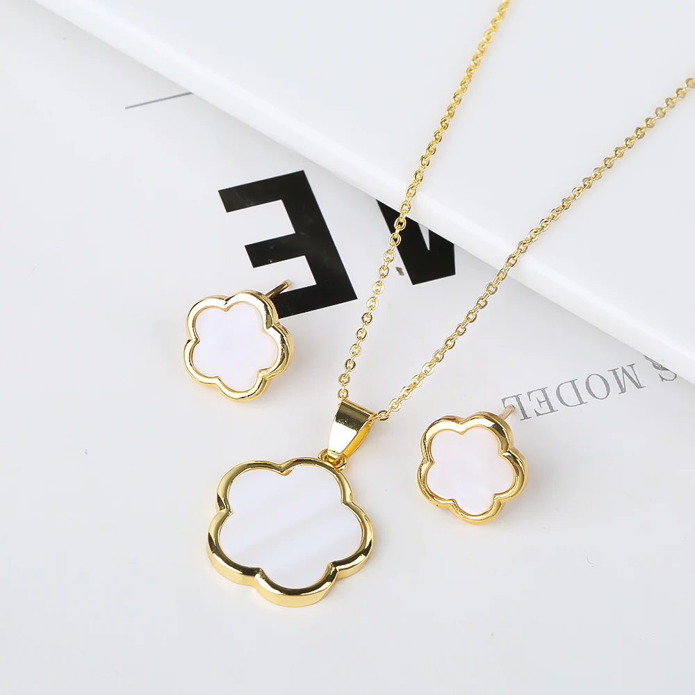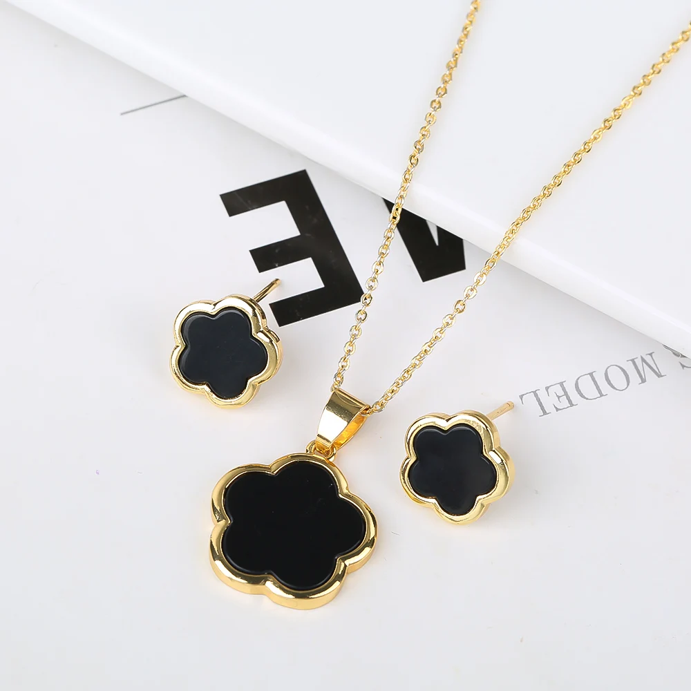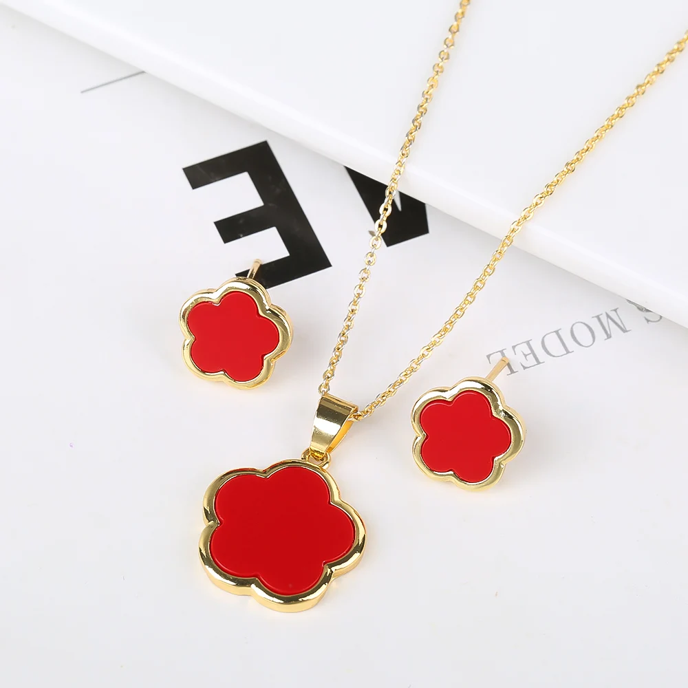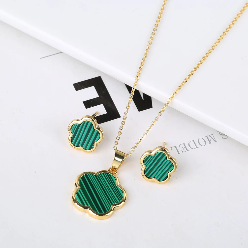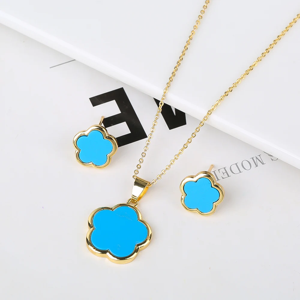 مجموعة قلادة وأقراط على شكل زهرة البرقوق من الحجر الطبيعي الجديد بسبعة ألوان، مجموعة فاخرة للنساء، هدية بسيطة من نبات البرسيم