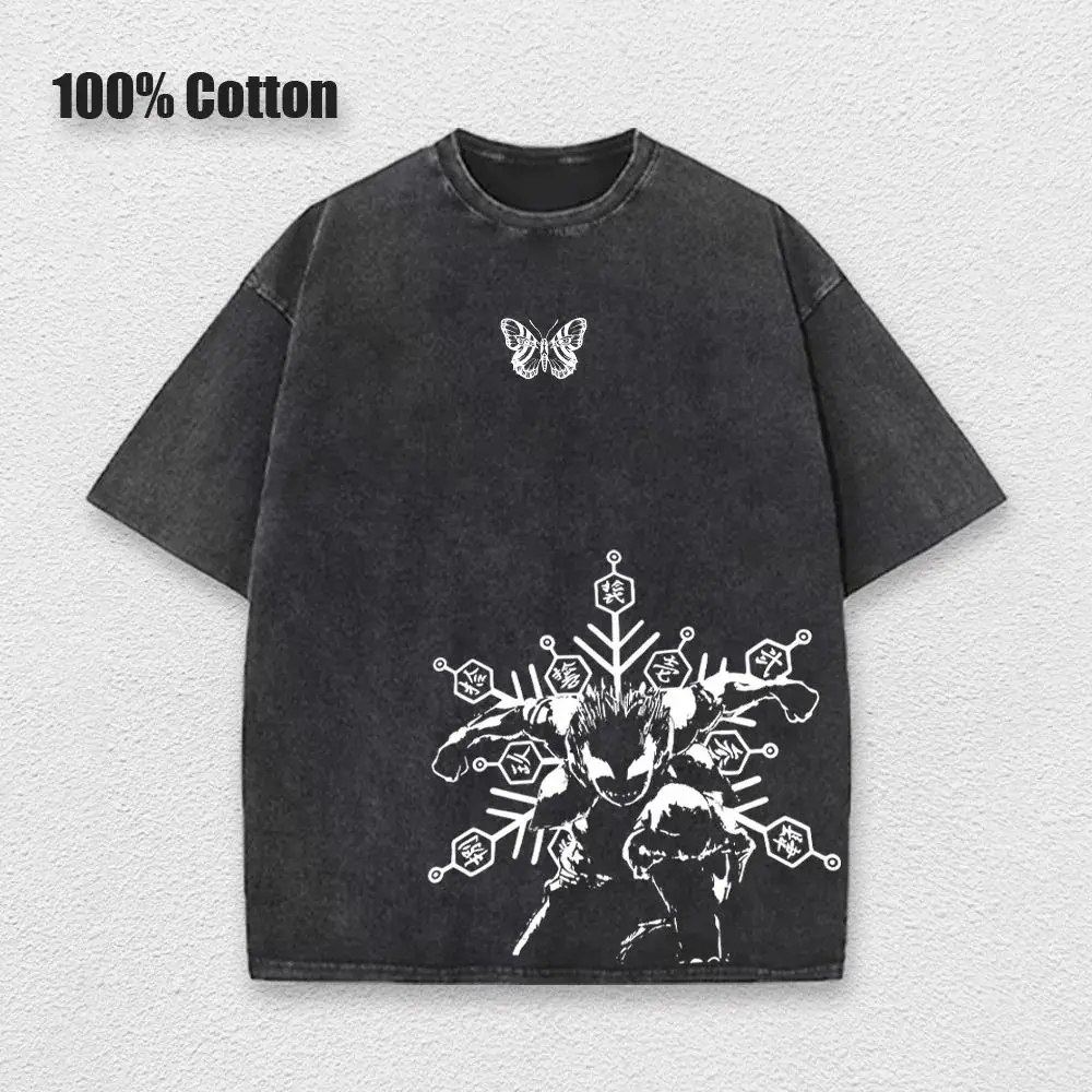 تي شيرت Akaza Koyuki Graphic Washed Large Size Y2K تي شيرت Manga Demon Slayer بأكمام قصيرة من القطن الناعم للرجال والنساء
