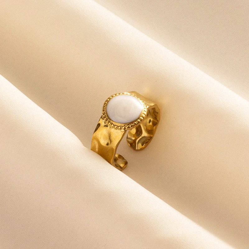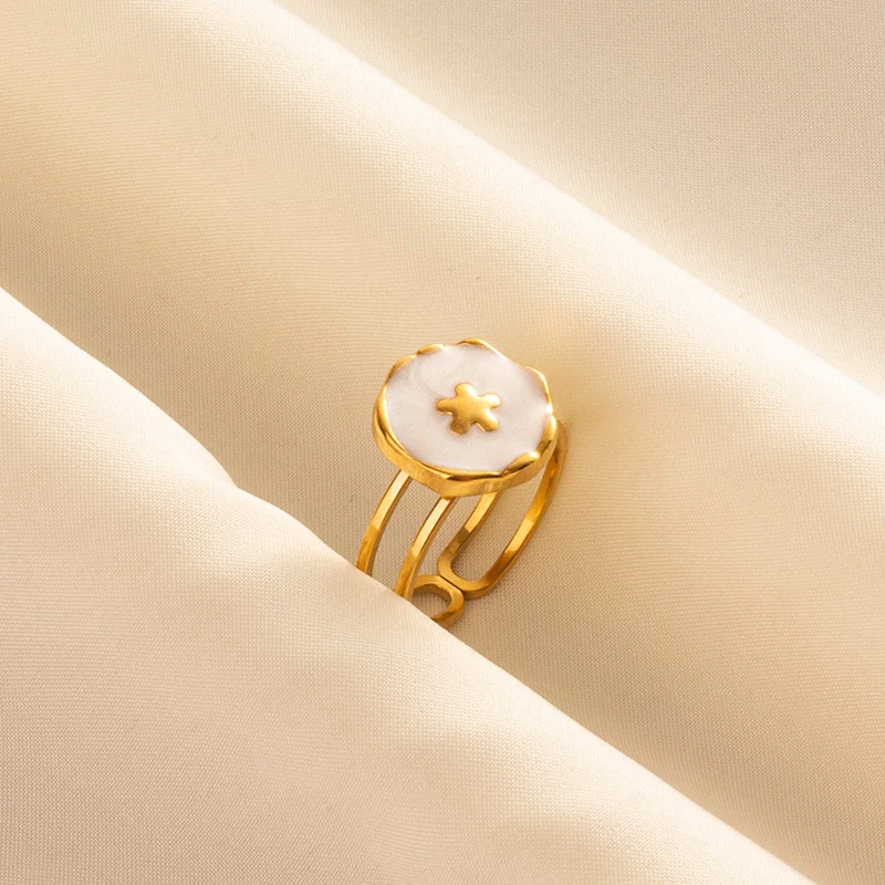خواتم مفتوحة فاخرة بتصميم غير منتظم من الفولاذ المقاوم للصدأ، مطلية بالمينا البيضاء، بلون ذهبي بوهيمي، قابلة للتعديل، مناسبة للنساء، هدايا مجوهرات ساحرة