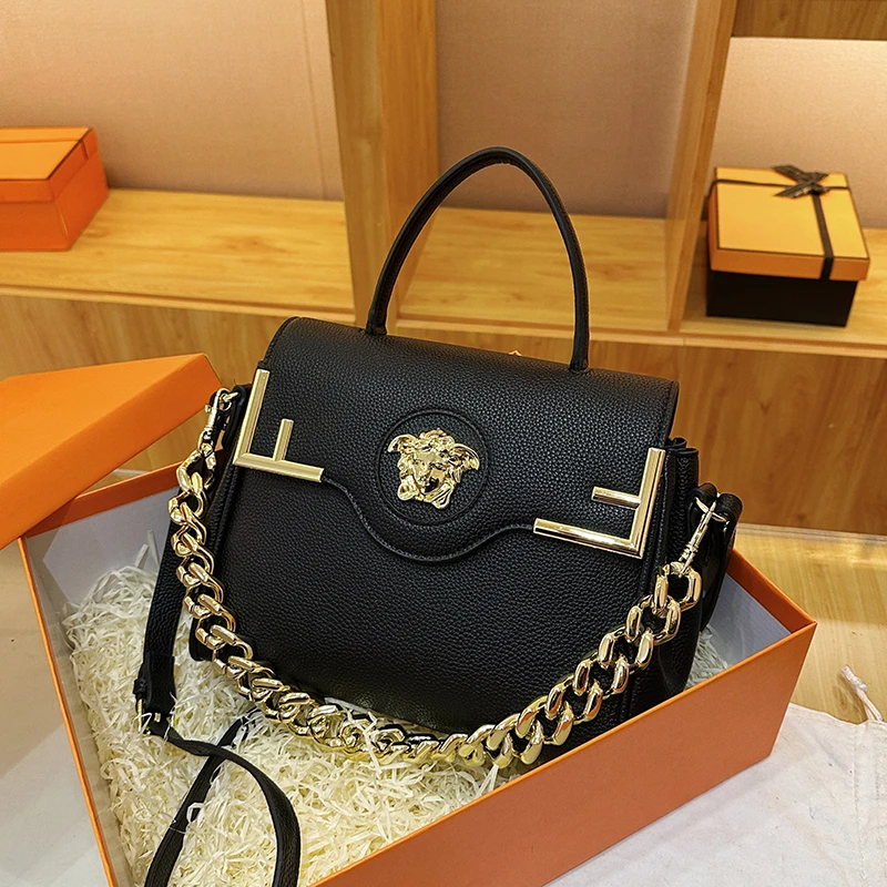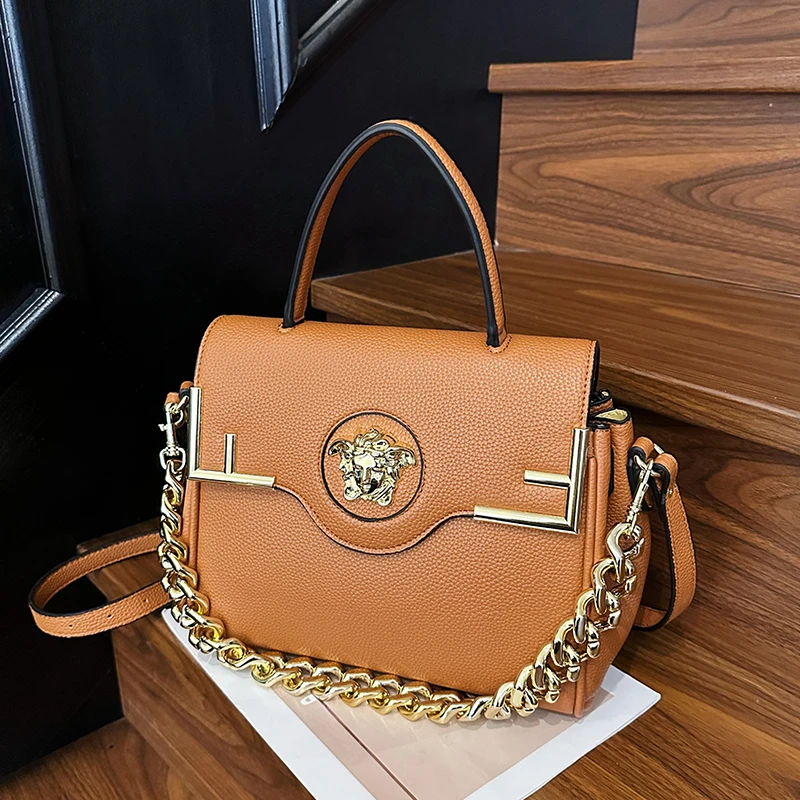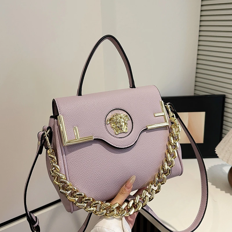حقيبة يد أنيقة فاخرة مستوحاة من ميدوسا مصنوعة من الجلد الصناعي بسعة كبيرة مزودة بسلسلة مغناطيسية وحزام قابل للتعديل وحقيبة كروس بودي للاستخدام اليومي