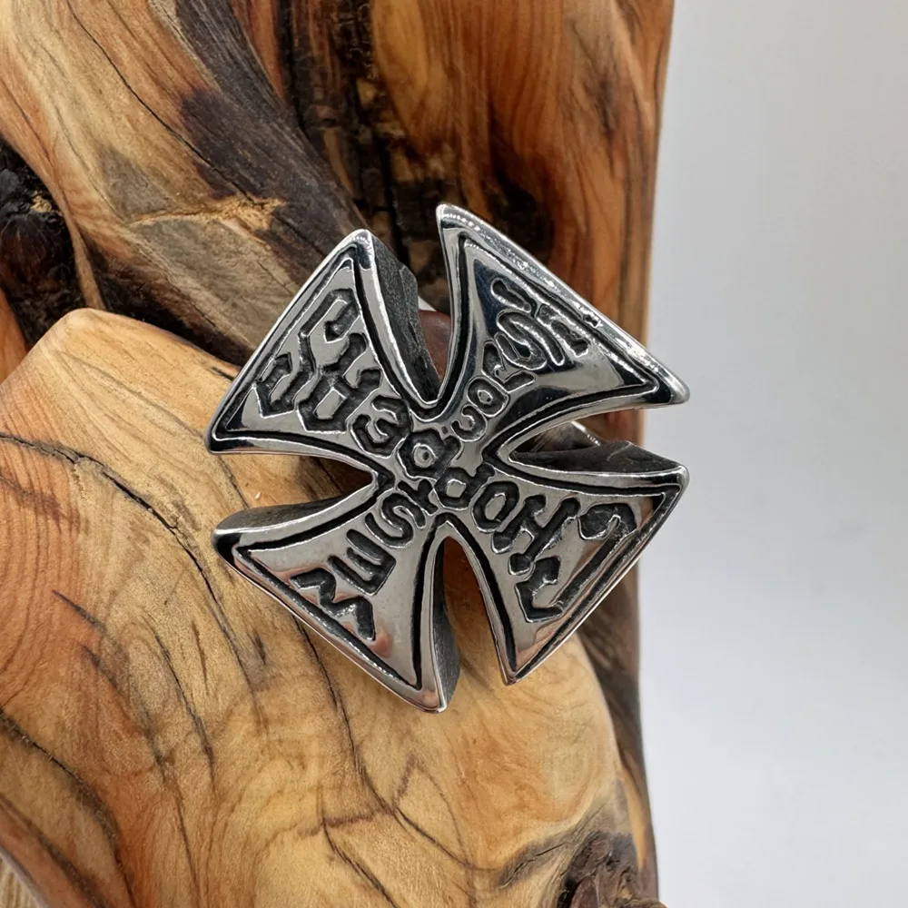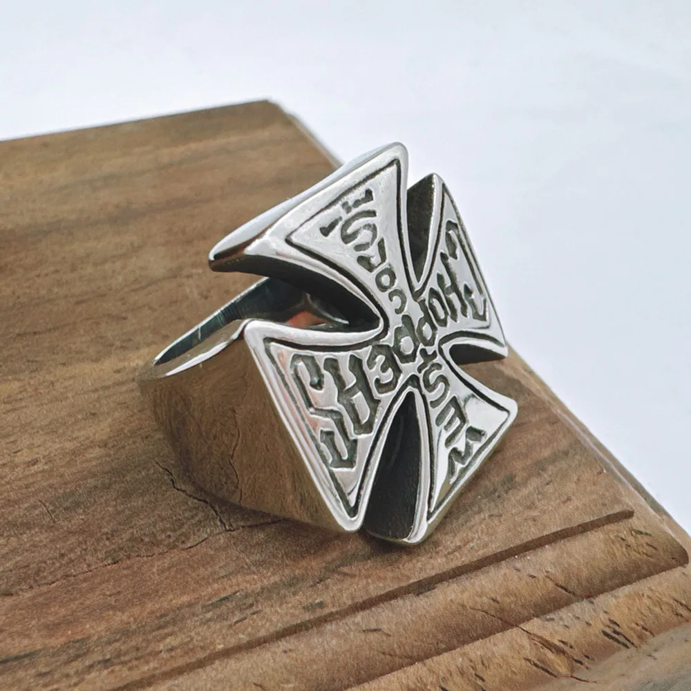 خاتم متقاطع من الفولاذ المقاوم للصدأ 316L مجوهرات راكبي الدراجات النارية والبانك للرجال خاتم عصري للدراجات النارية