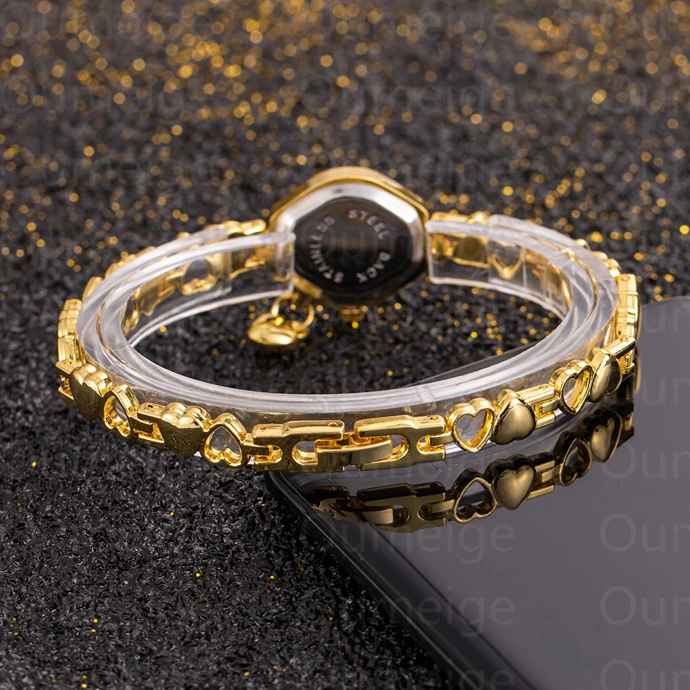 ساعات نسائية أنيقة ذات مينا صغير، ساعات يد ذهبية فاخرة للنساء، ساعات كوارتز بسيطة للنساء