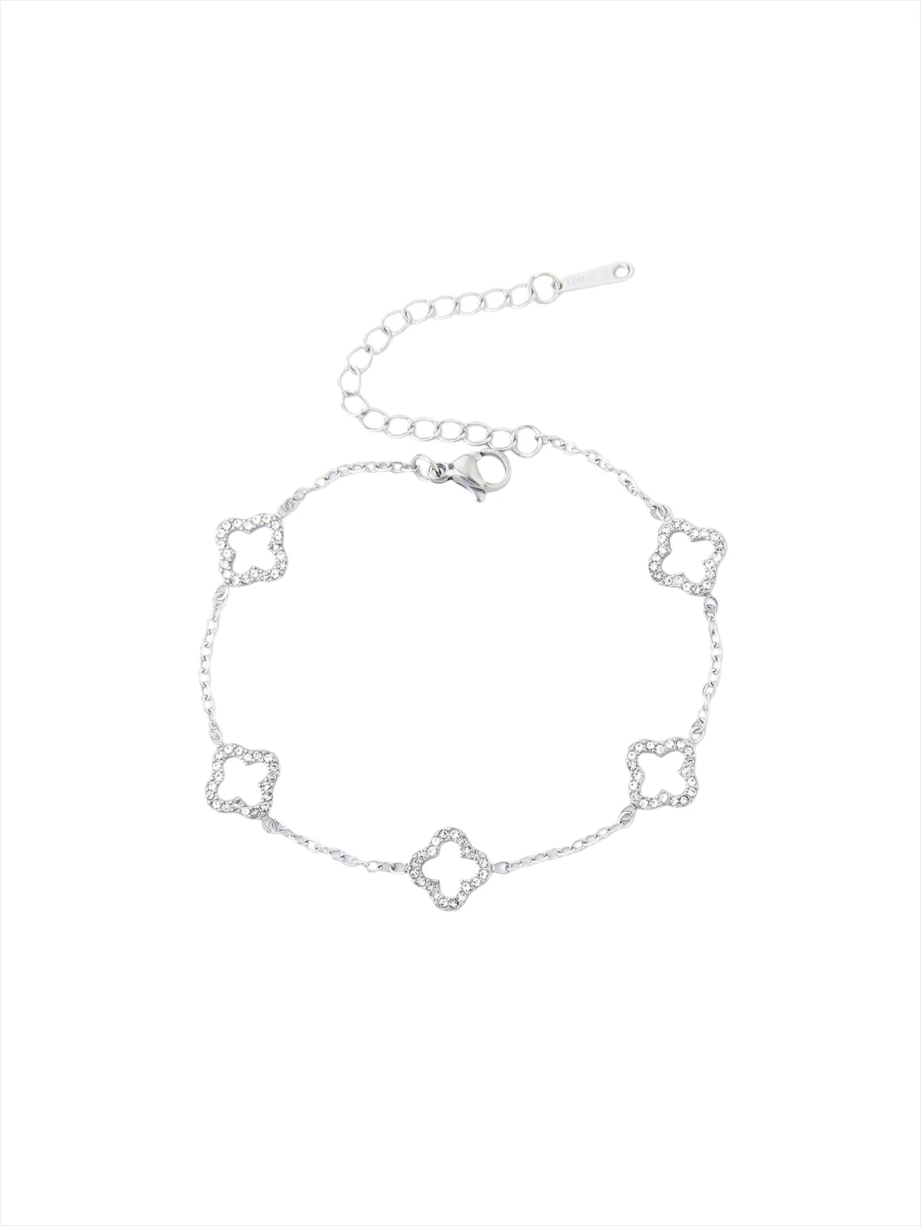 سوار أنيق من الفولاذ المقاوم للصدأ مع زهرة البرسيم الرباعية الماسية، خصر صغير، سوار مجوف من زهرة البرسيم الرباعية للنساء