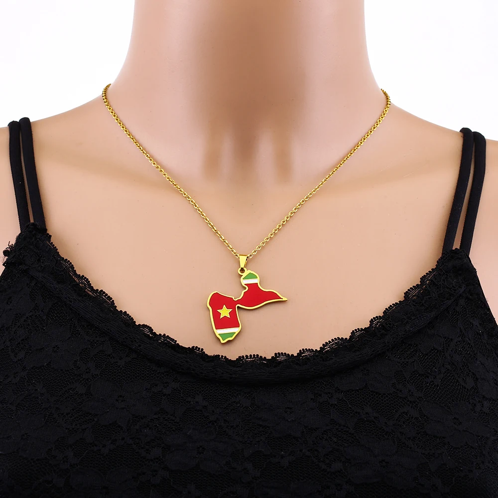 قلادة مطلية بالمينا على شكل خريطة غوادلوب من الفولاذ المقاوم للصدأ للنساء غوادلوب باللون الذهبي مجوهرات هدايا حفلات أعياد الميلاد العرقية