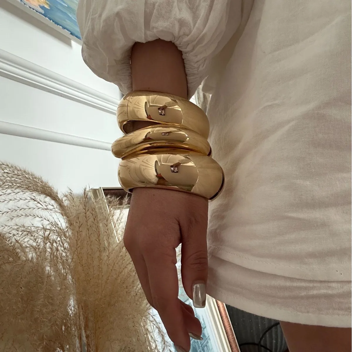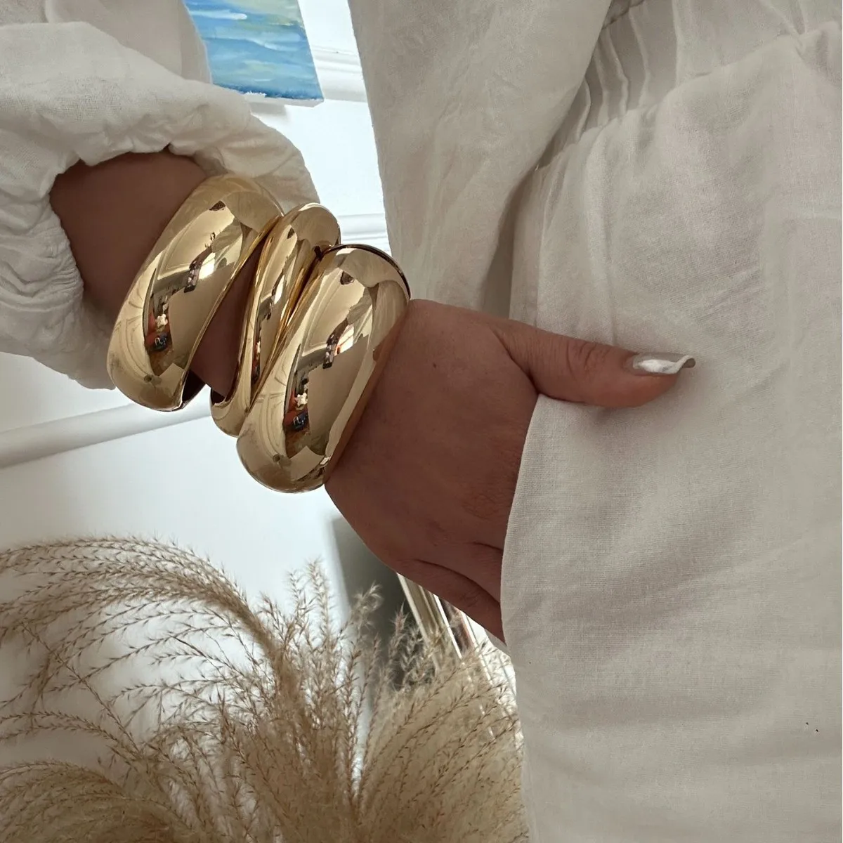 أساور زنبركية عريضة غير منتظمة وناعمة ومبالغ فيها للنساء، أساور معدنية هندسية بنمط الهيب هوب والبانك للنساء، مجوهرات بولسيراس