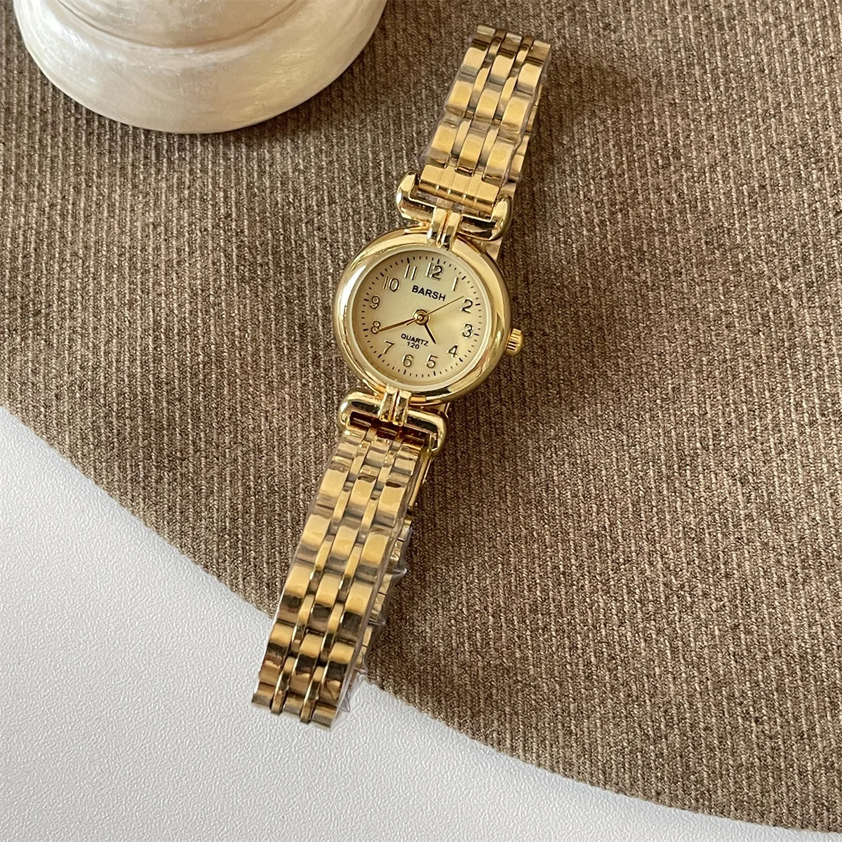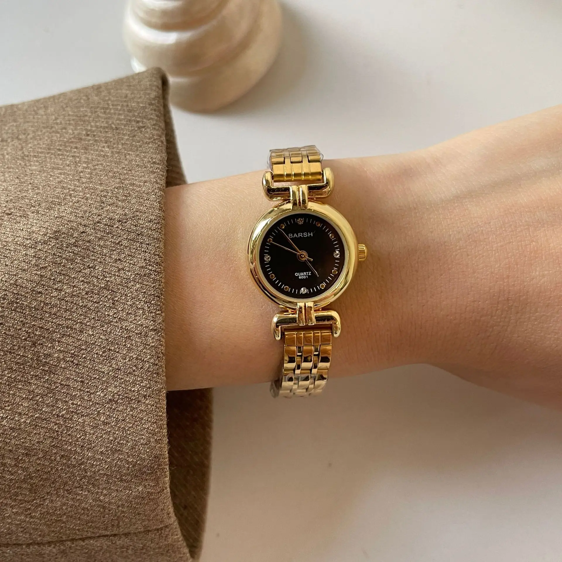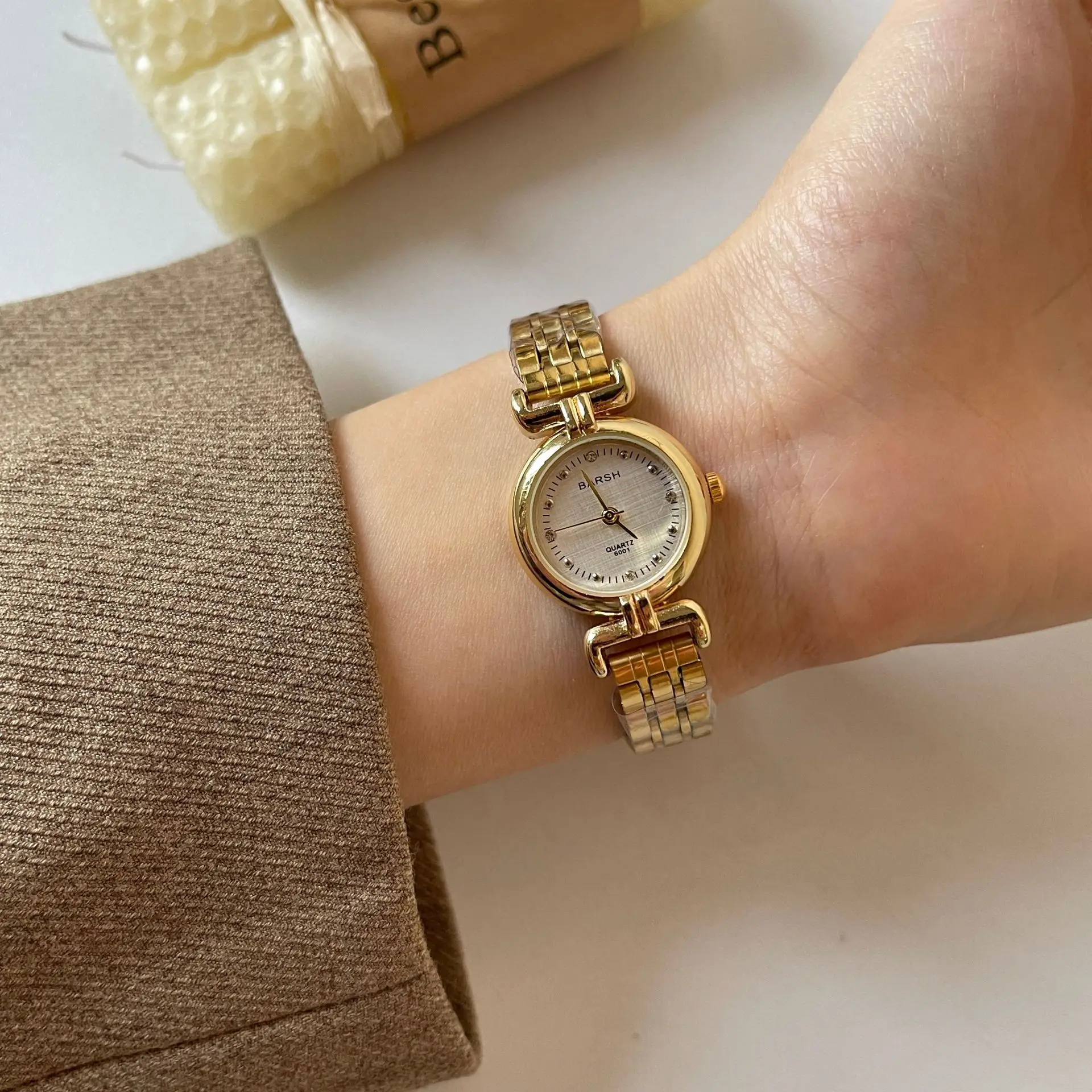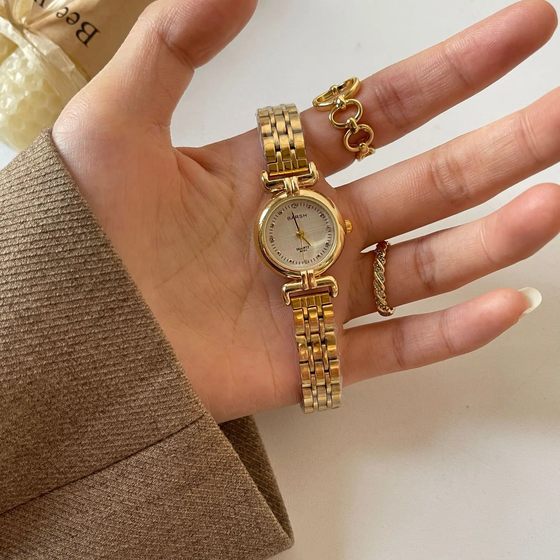ساعة نسائية من ماركة مشهورة، مينا صغير، ذهبية، هدية فاخرة، ساعات كوارتز، شحن مباشر، سوار من الفولاذ المقاوم للصدأ، ساعة نسائية