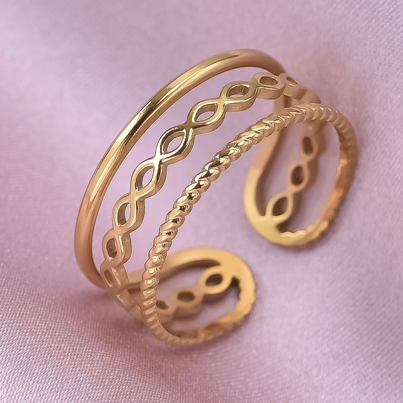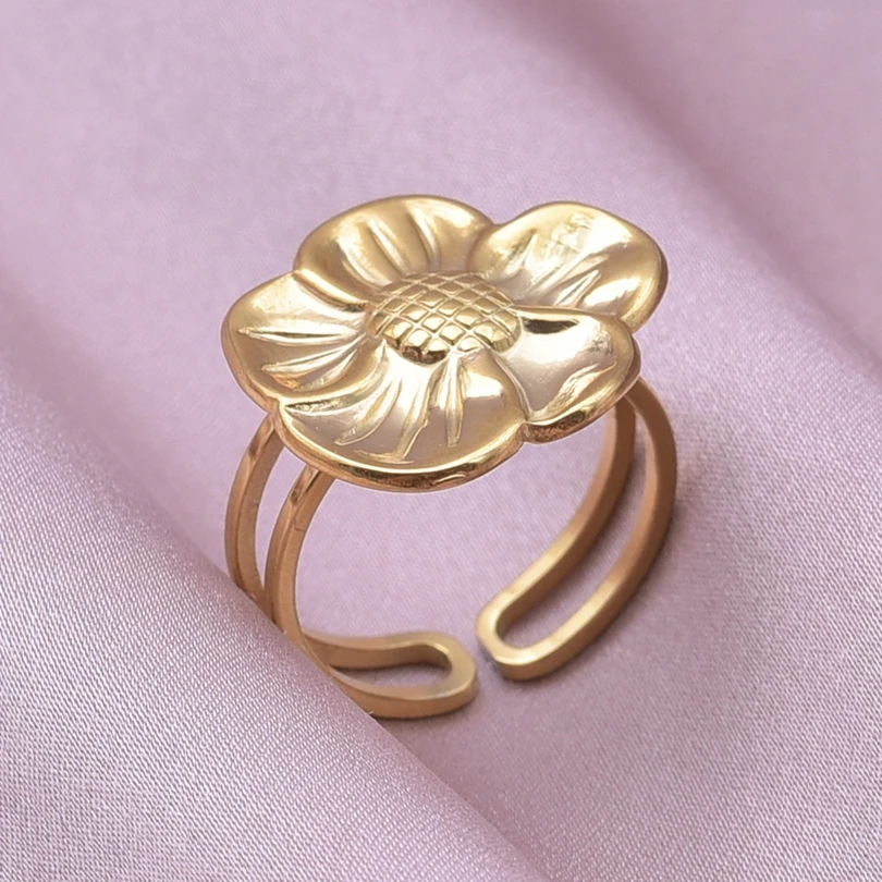 6 قطع/مجموعة خواتم أنيقة مطلية بالذهب الحقيقي من الفولاذ المقاوم للصدأ على شكل زهرة وقلب وحب وصليب خواتم مجوهرات للنساء والرجال إكسسوارات ساحرة