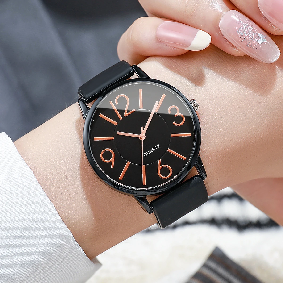 • حركة كوارتز: تعمل الساعة بحركة كوارتز موثوقة، مما يضمن ضبط الوقت بدقة.