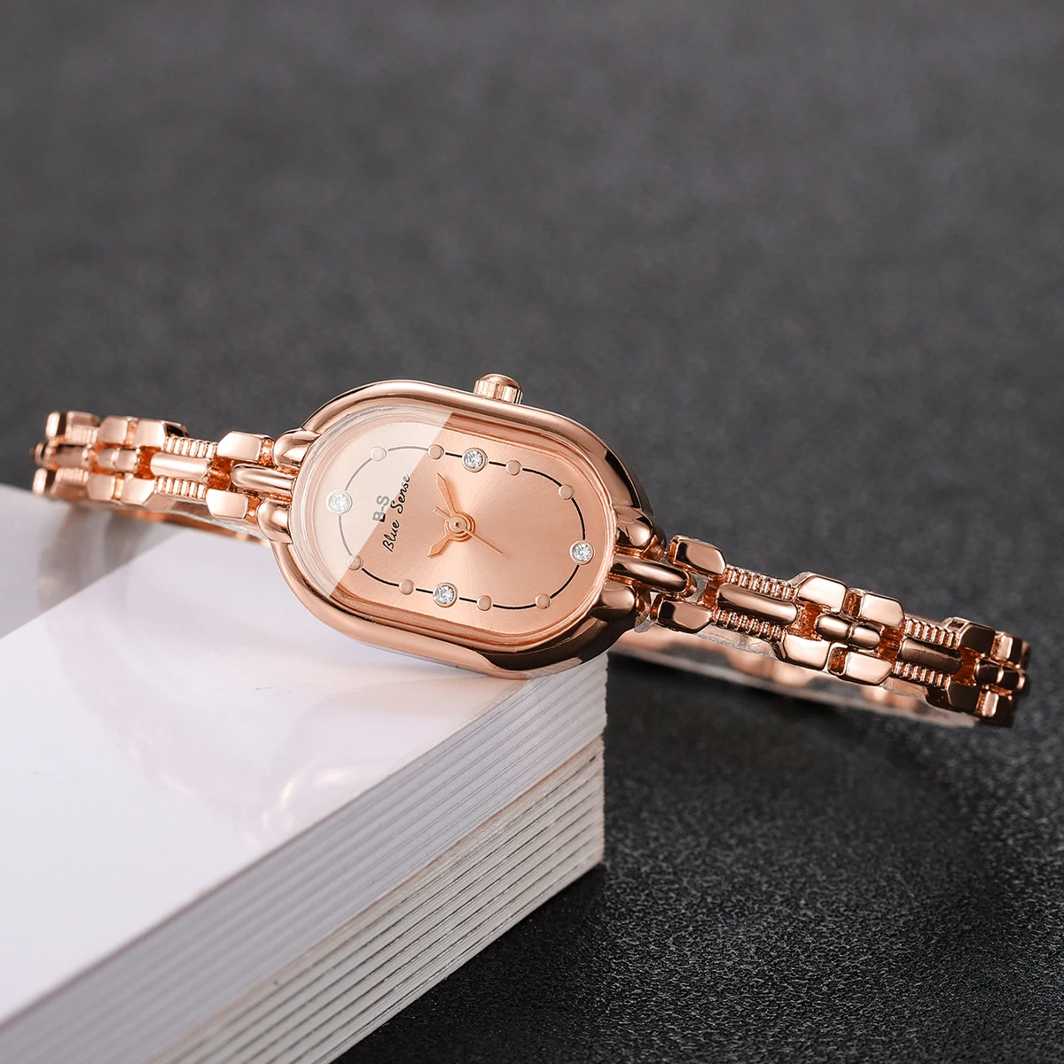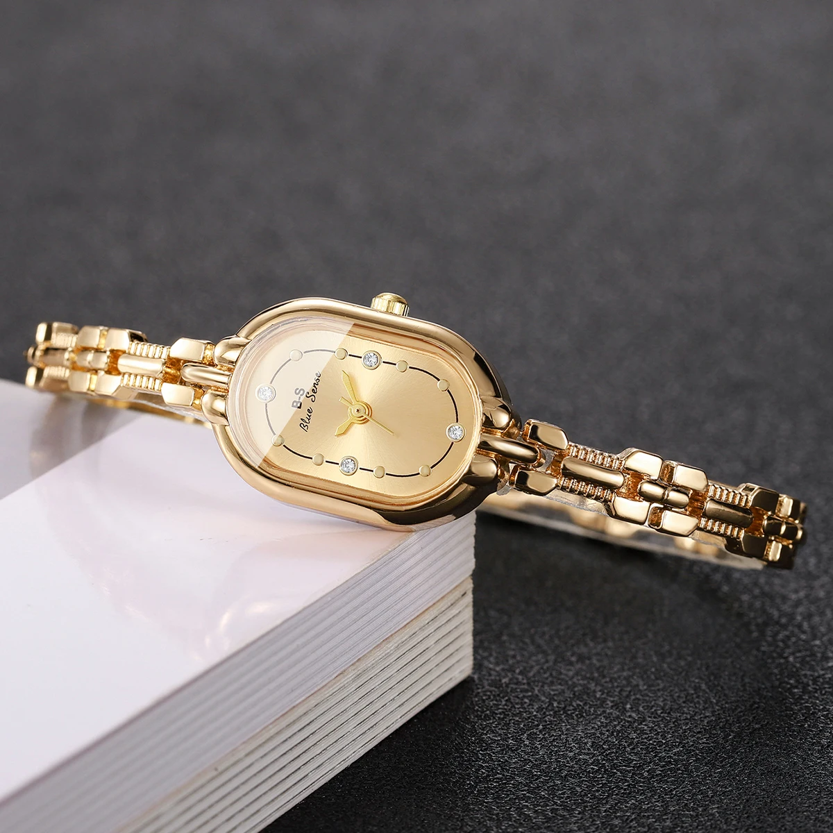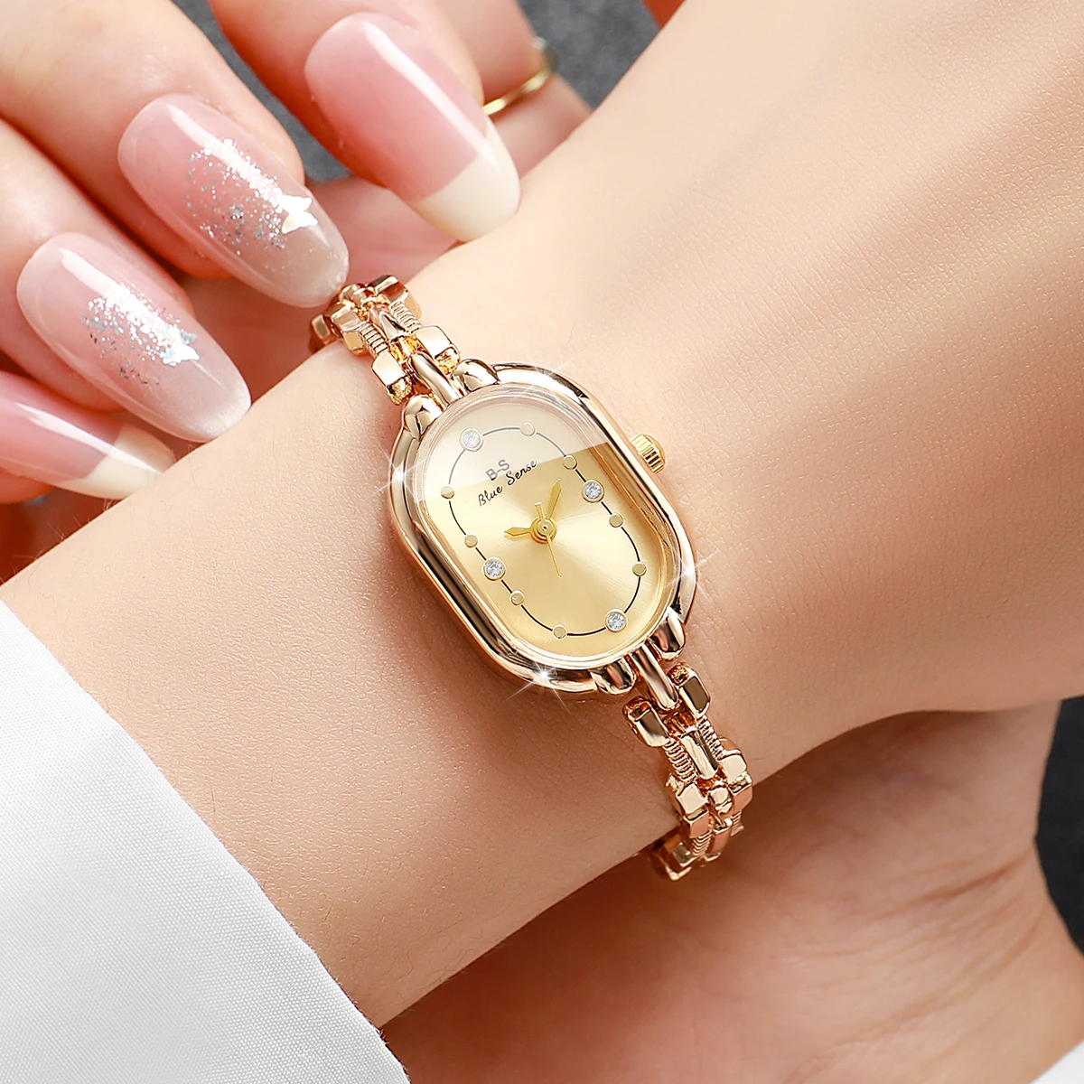 ساعة يد نسائية أنيقة مرصعة بأحجار الراين، ذات مينا صغير، تعمل بالكوارتز، مزودة بسوار أنيق، هدية مثالية للفتيات (بدون علبة).