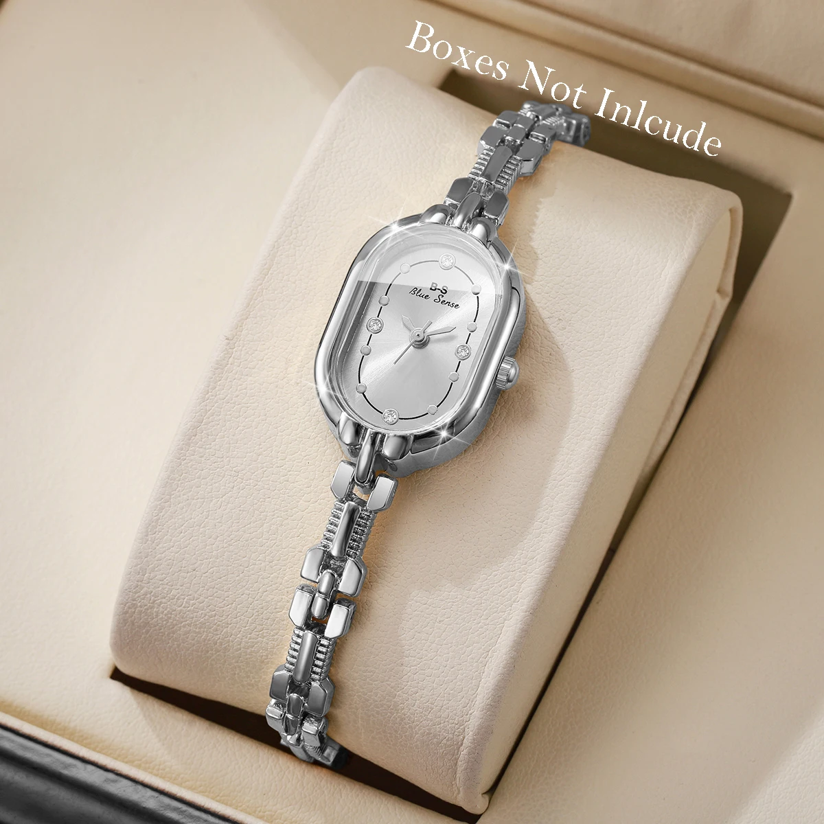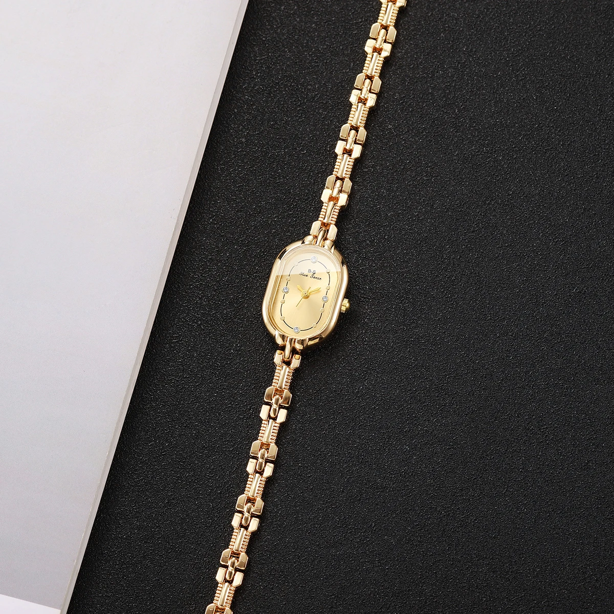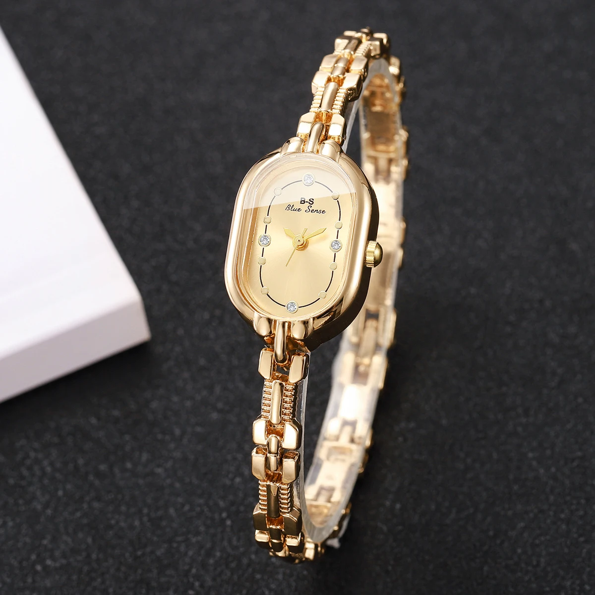 ساعة يد نسائية أنيقة مرصعة بأحجار الراين، ذات مينا صغير، تعمل بالكوارتز، مزودة بسوار أنيق، هدية مثالية للفتيات (بدون علبة).
