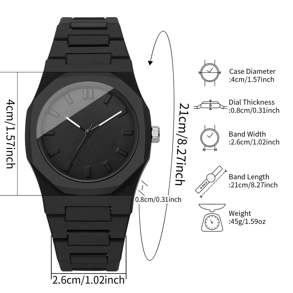 طول سوار الساعة تقريبًا: 210 مم