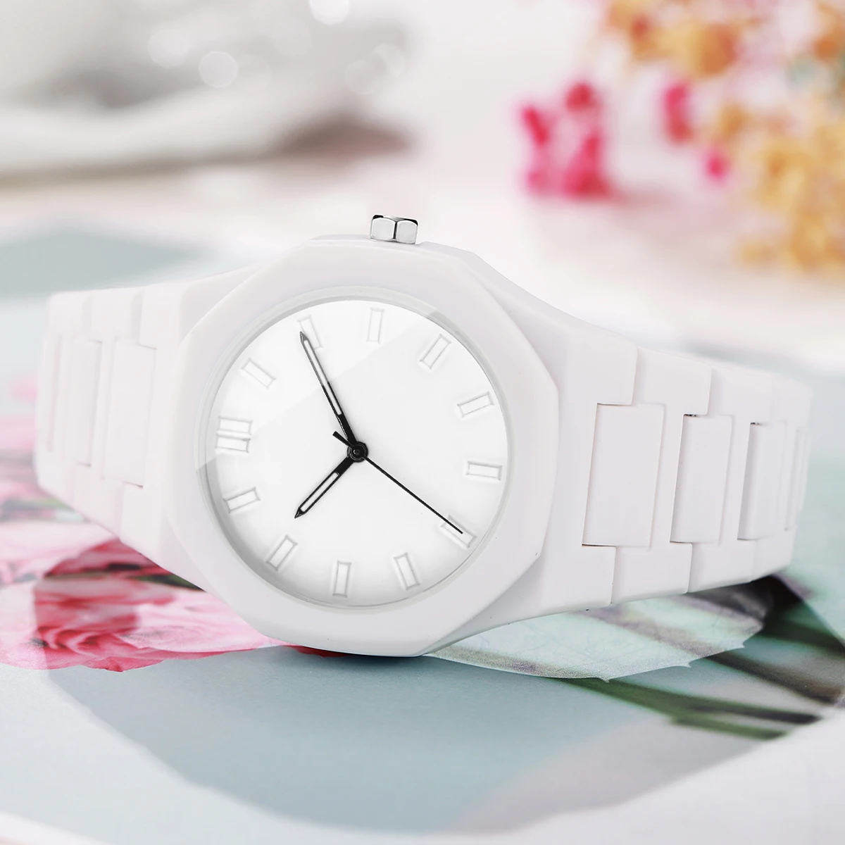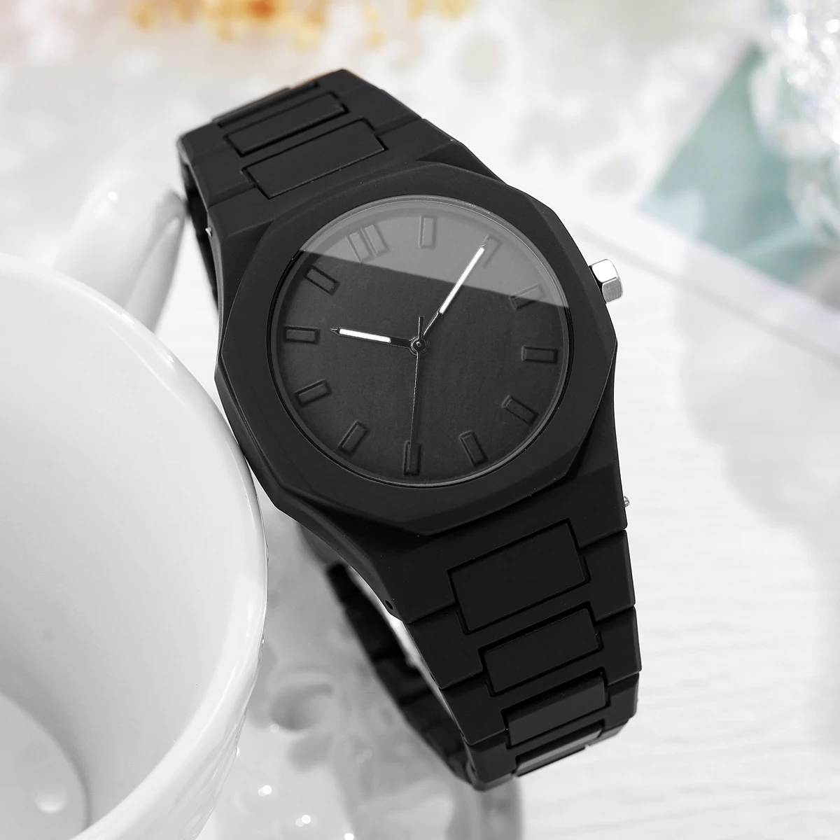 • حركة كوارتز: تعمل الساعة بحركة كوارتز موثوقة، مما يضمن ضبط الوقت بدقة.