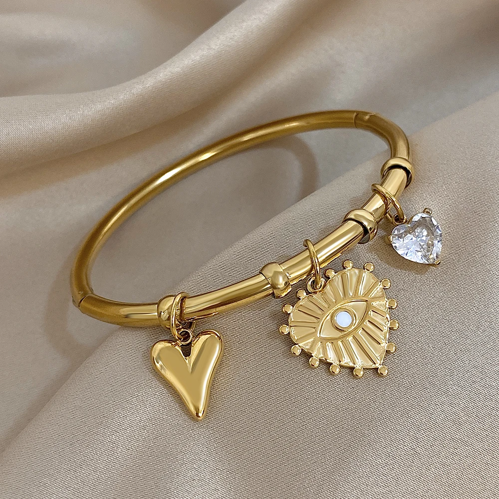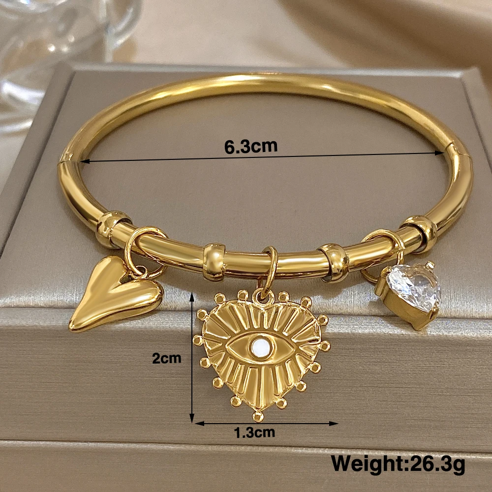 سوار أنيق من الفولاذ المقاوم للصدأ للنساء مطلي بالذهب على شكل قلب من الزركون وعين الشيطان مع أساور مجوهرات هدايا