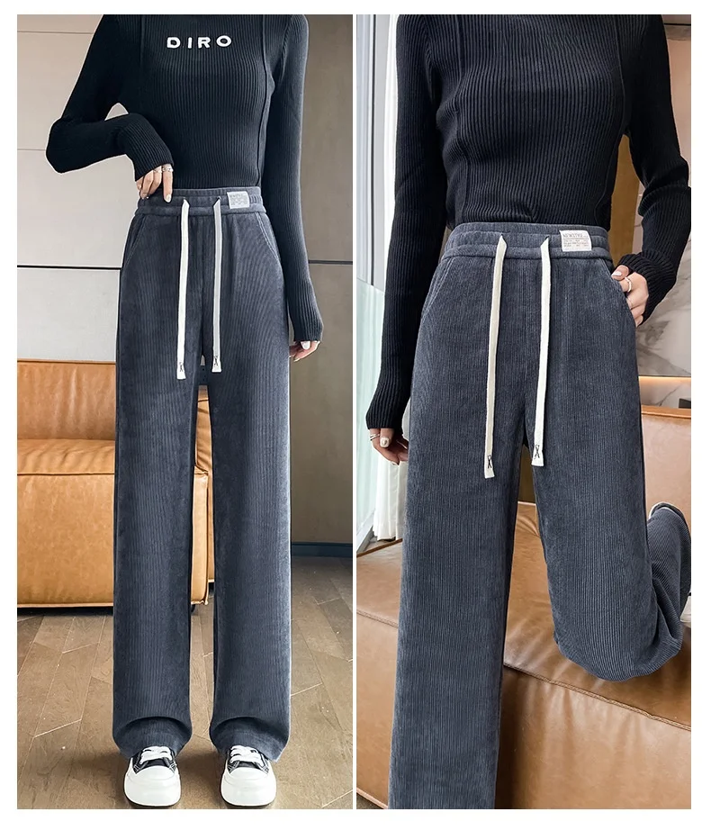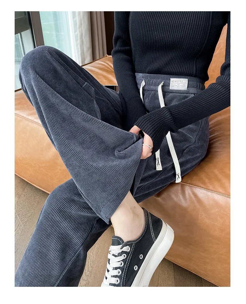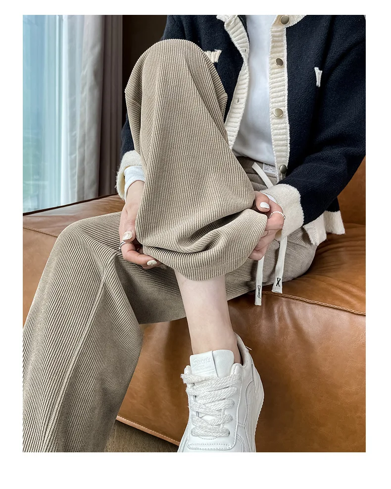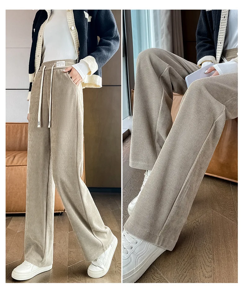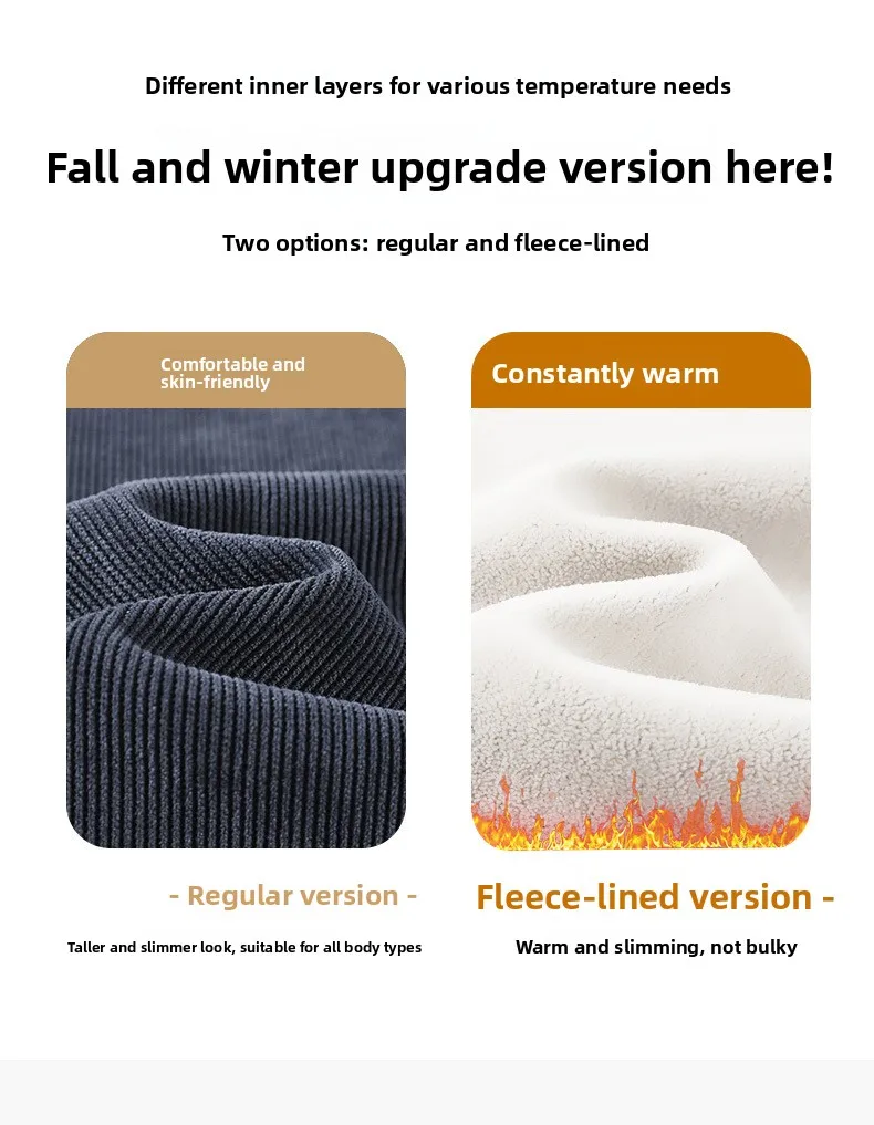 Crafted from thickened corduroy material, these pants offer a luxurious feel and a cozy, warm experience, ideal for cooler seasons.