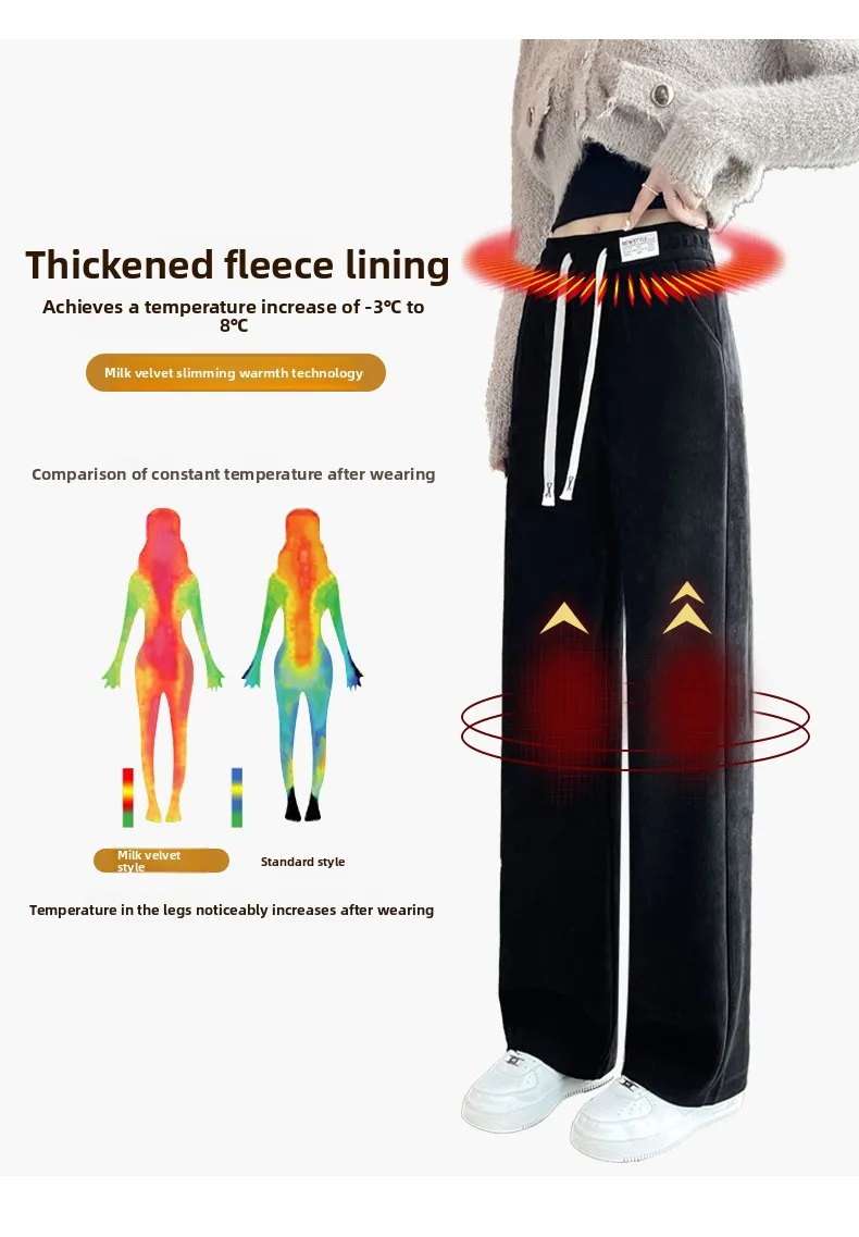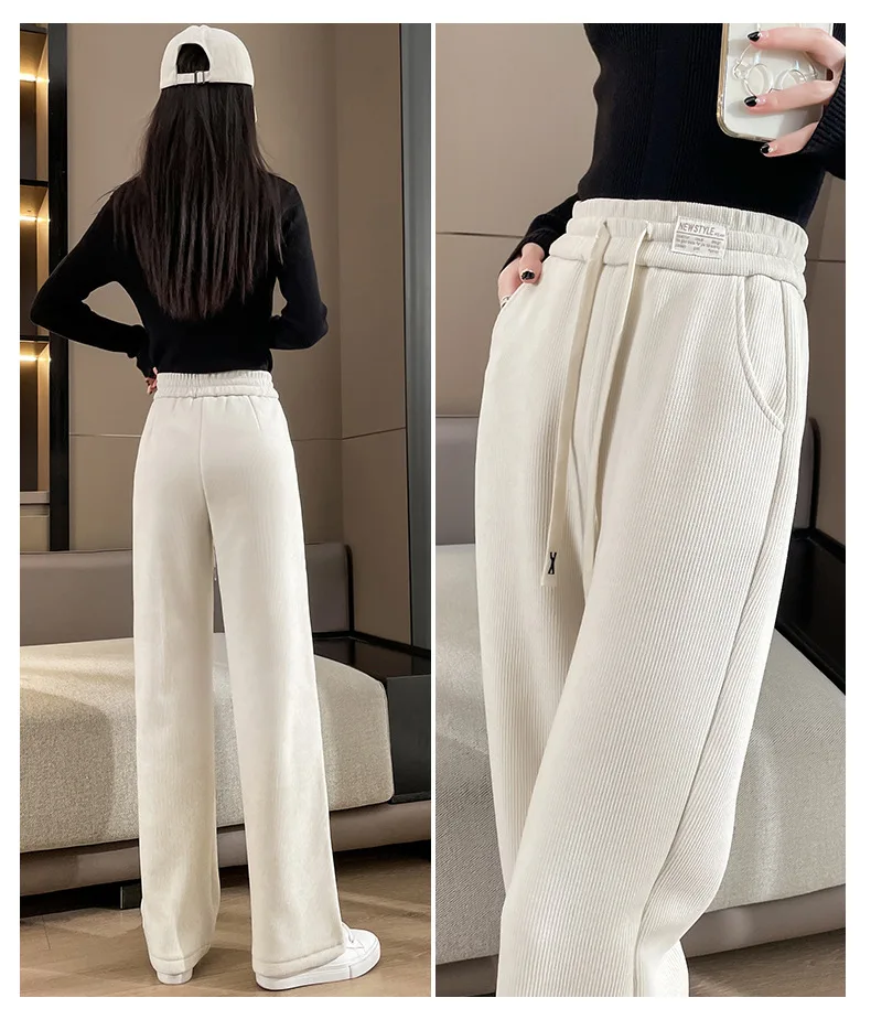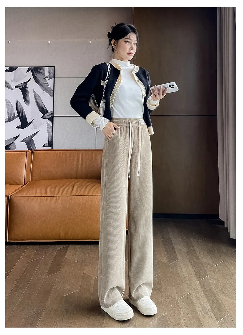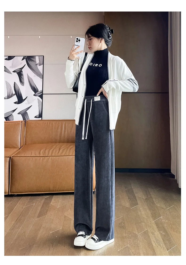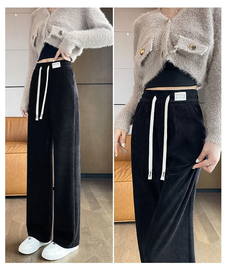 Crafted from thickened corduroy material, these pants offer a luxurious feel and a cozy, warm experience, ideal for cooler seasons.