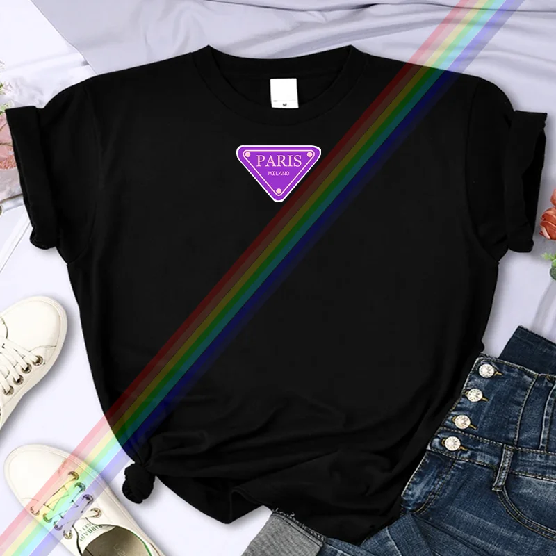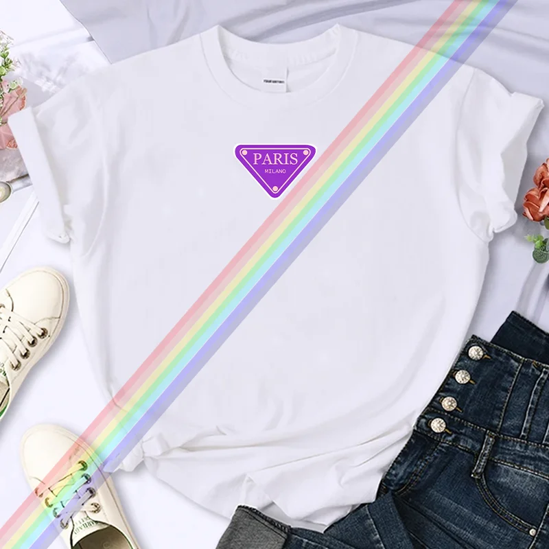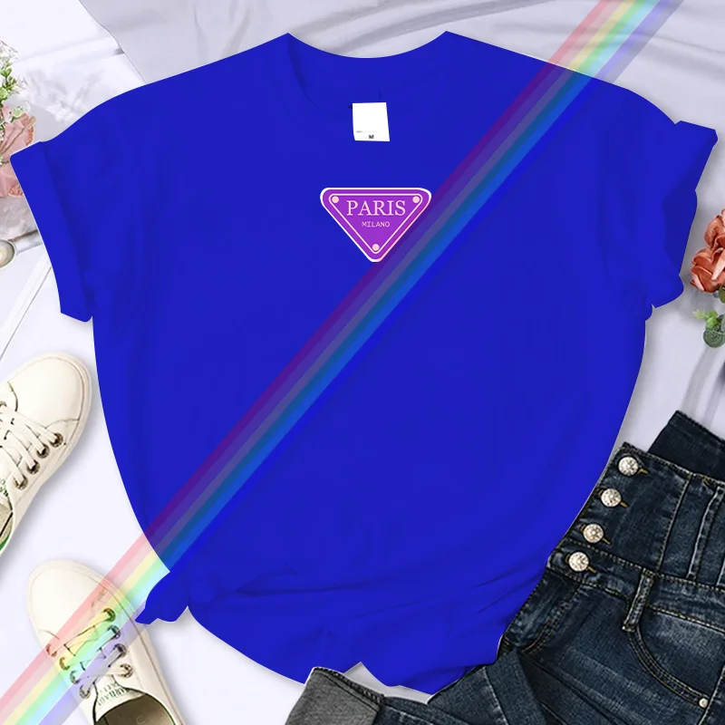 تي شيرت نسائي صيفي عالي الجودة مطبوع عليه باريس من ماركة فاخرة، مصنوع من القطن بنسبة 100%، مقاس كبير، بأكمام شخصية Y2K، ورقبة دائرية