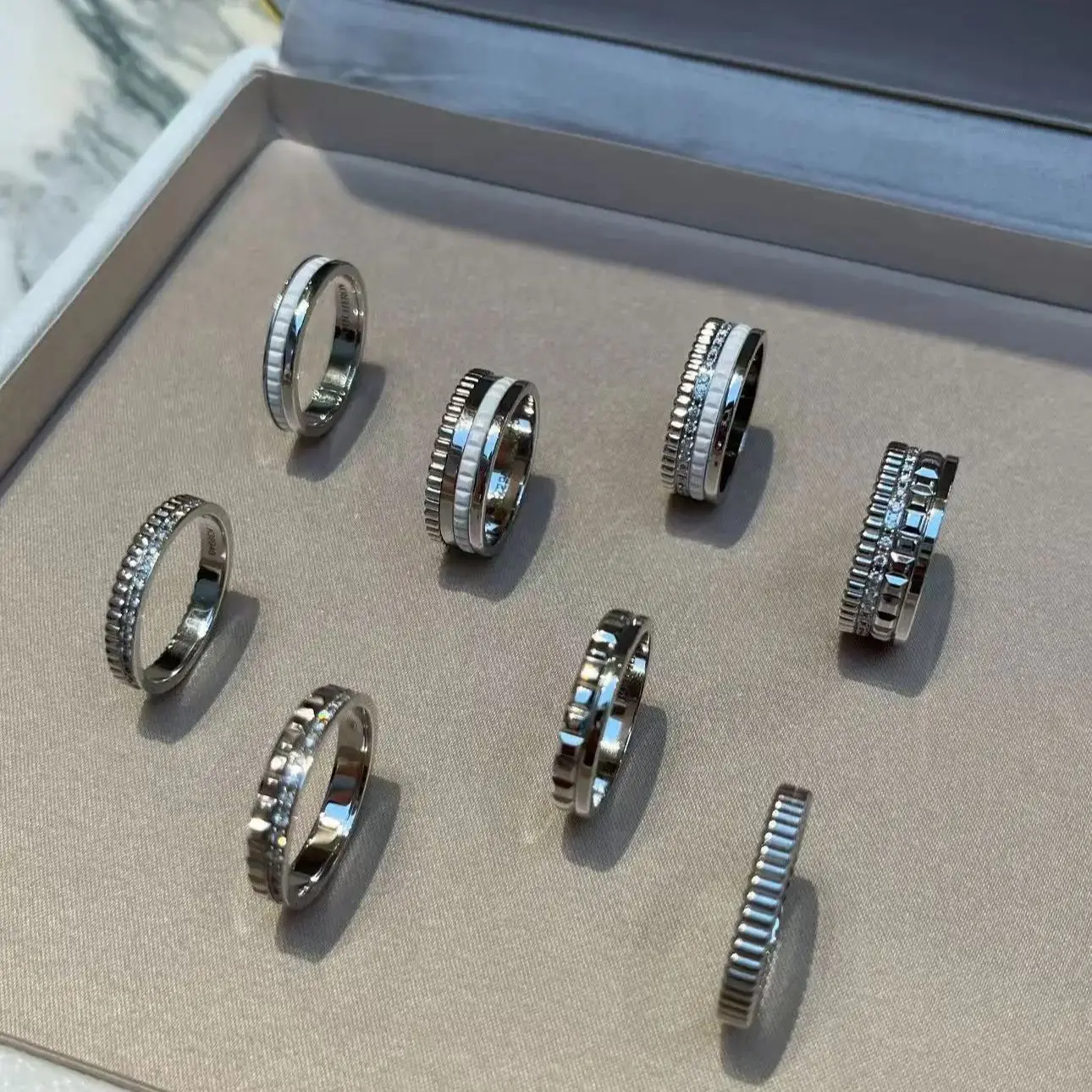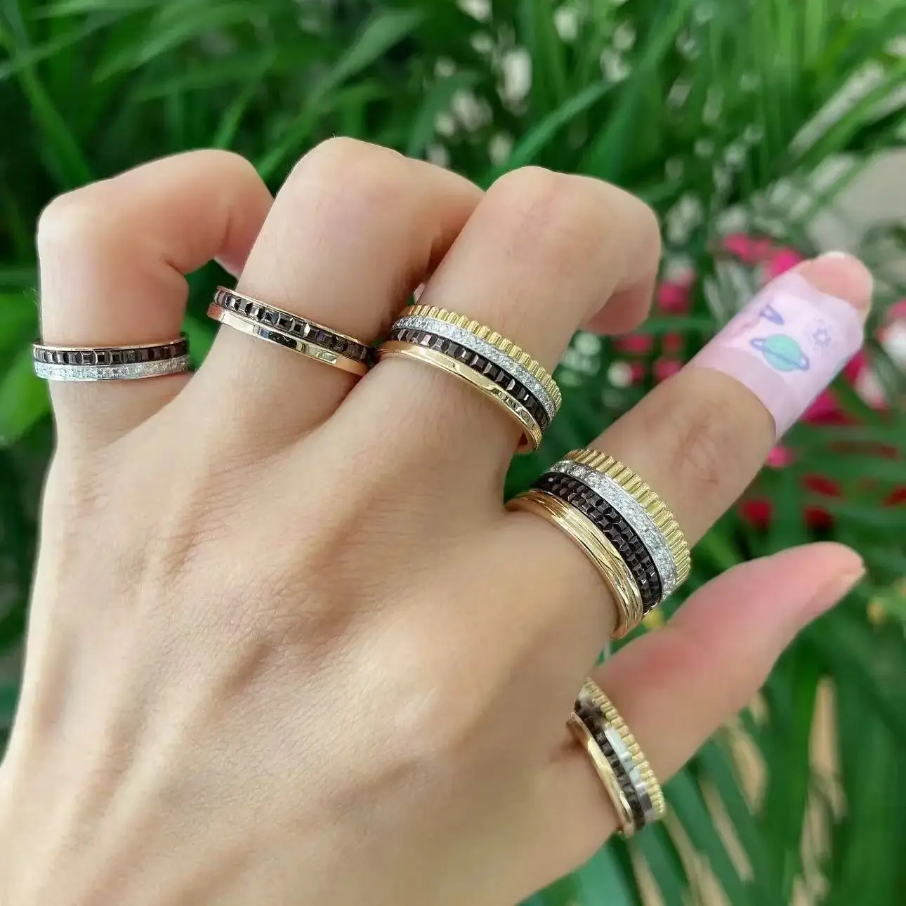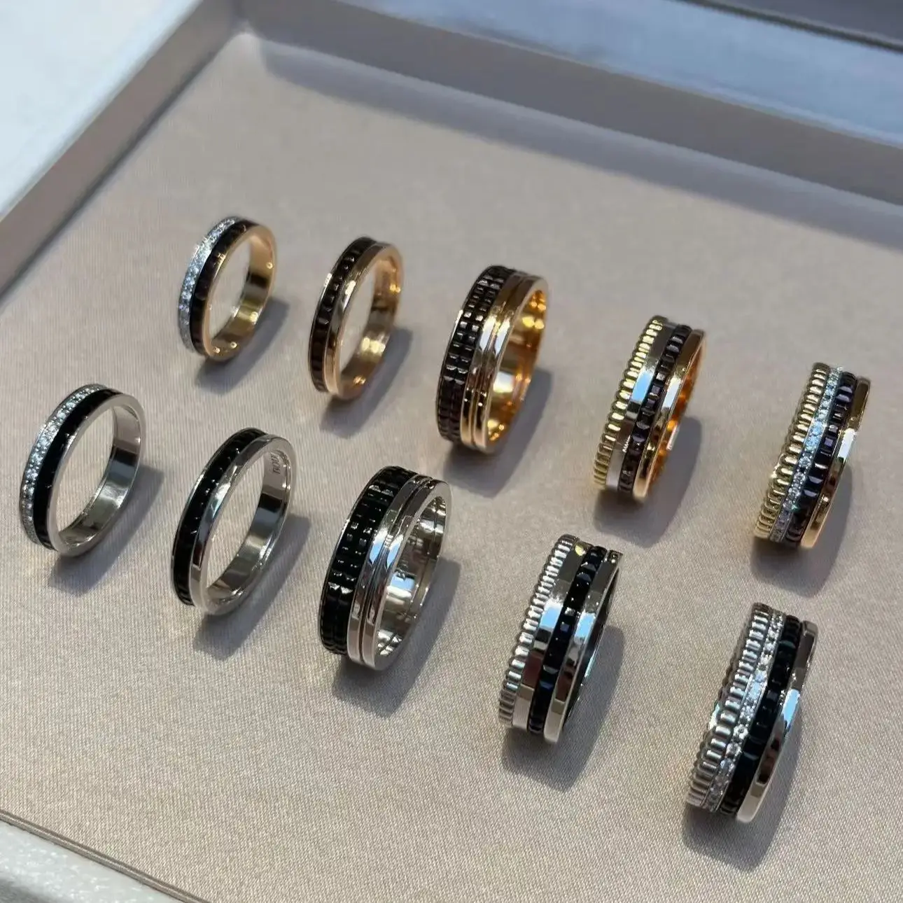 خواتم دوارة فاخرة على الطراز الفرنسي للرجال والنساء قابلة للدوران مصنوعة من مادة الموزانيت عالية الجودة باللونين الأسود والأبيض هدية للمهرجانات