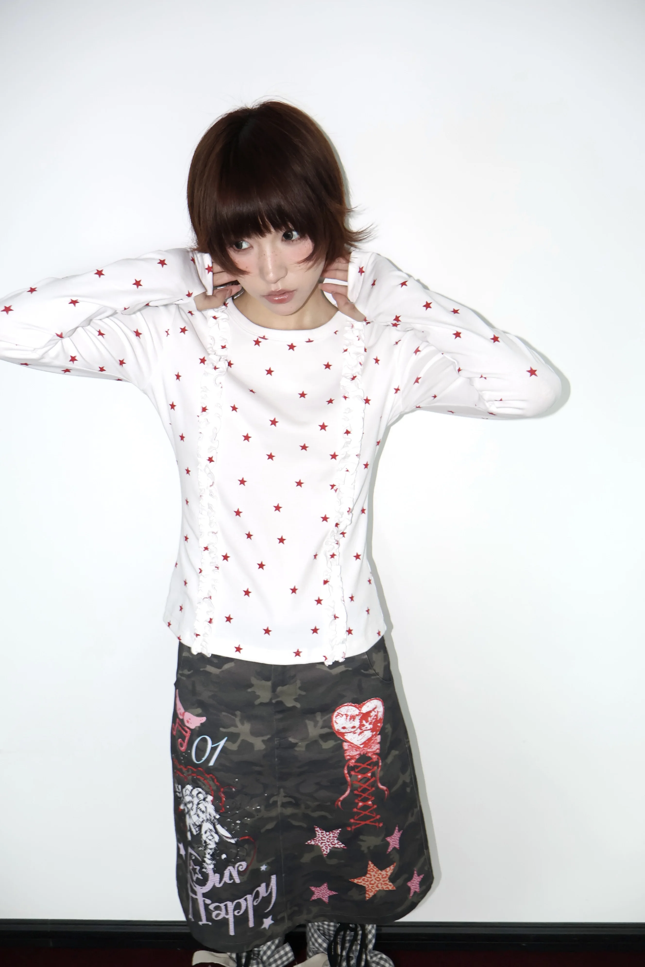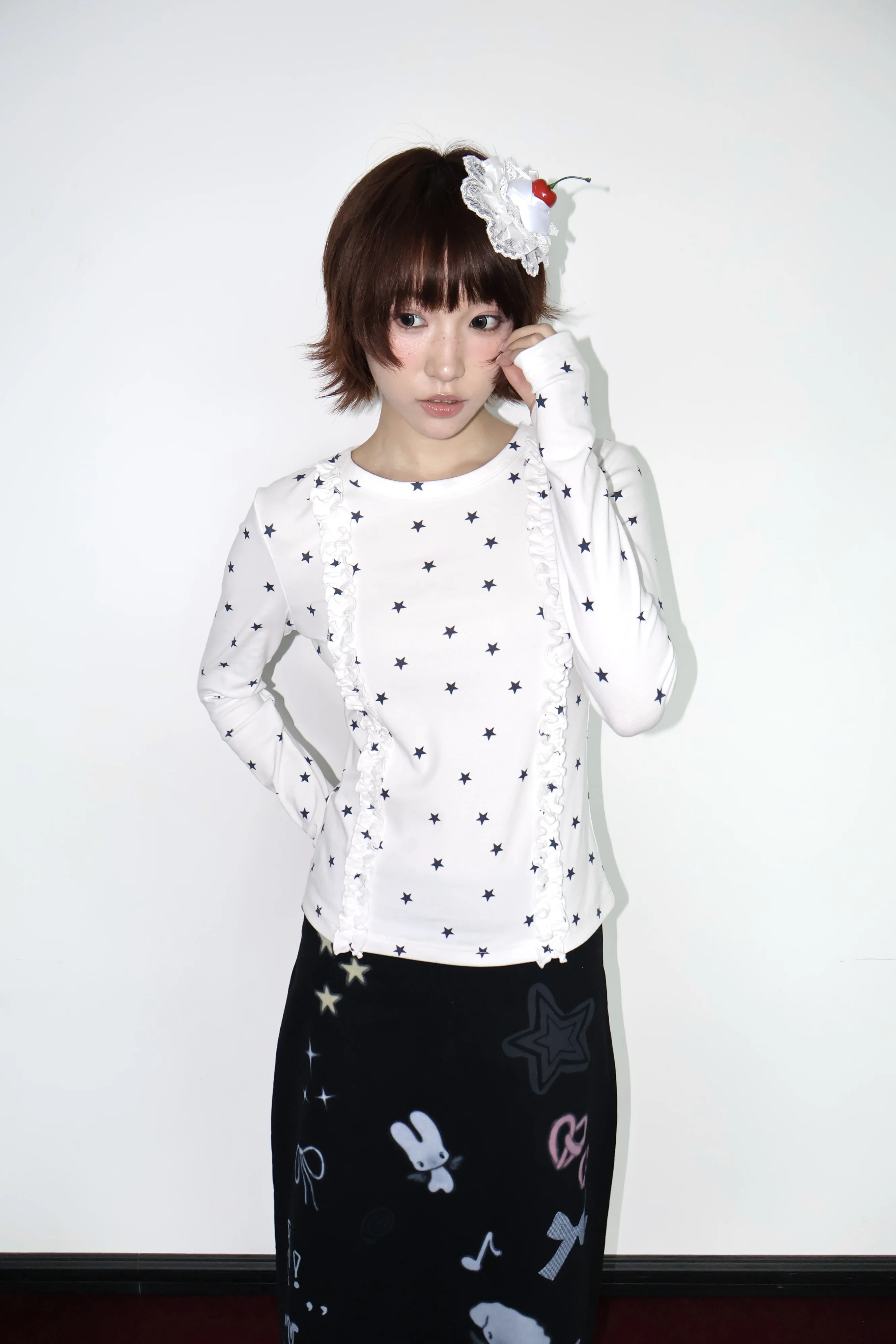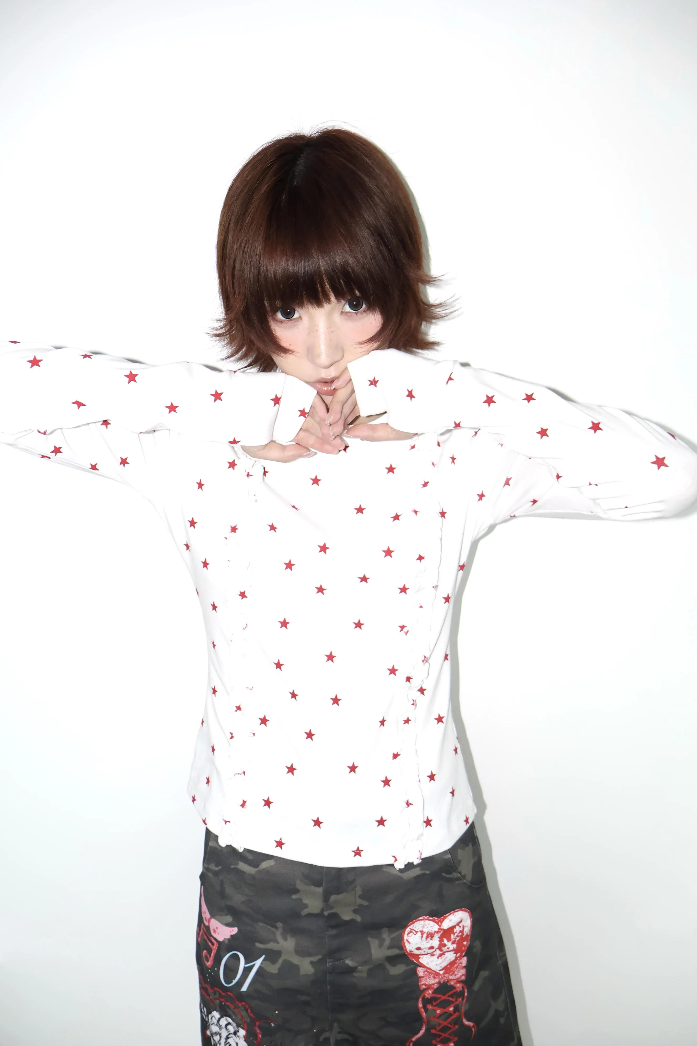 تي شيرت نسائي Genayooa Y2k Aesthetic بأكمام طويلة مطبوع عليه نجوم ورسومات جرافيكية، تي شيرت قطني ياباني من العقد الأول من القرن الحادي والعشرين، تي شيرتات عالية الجودة