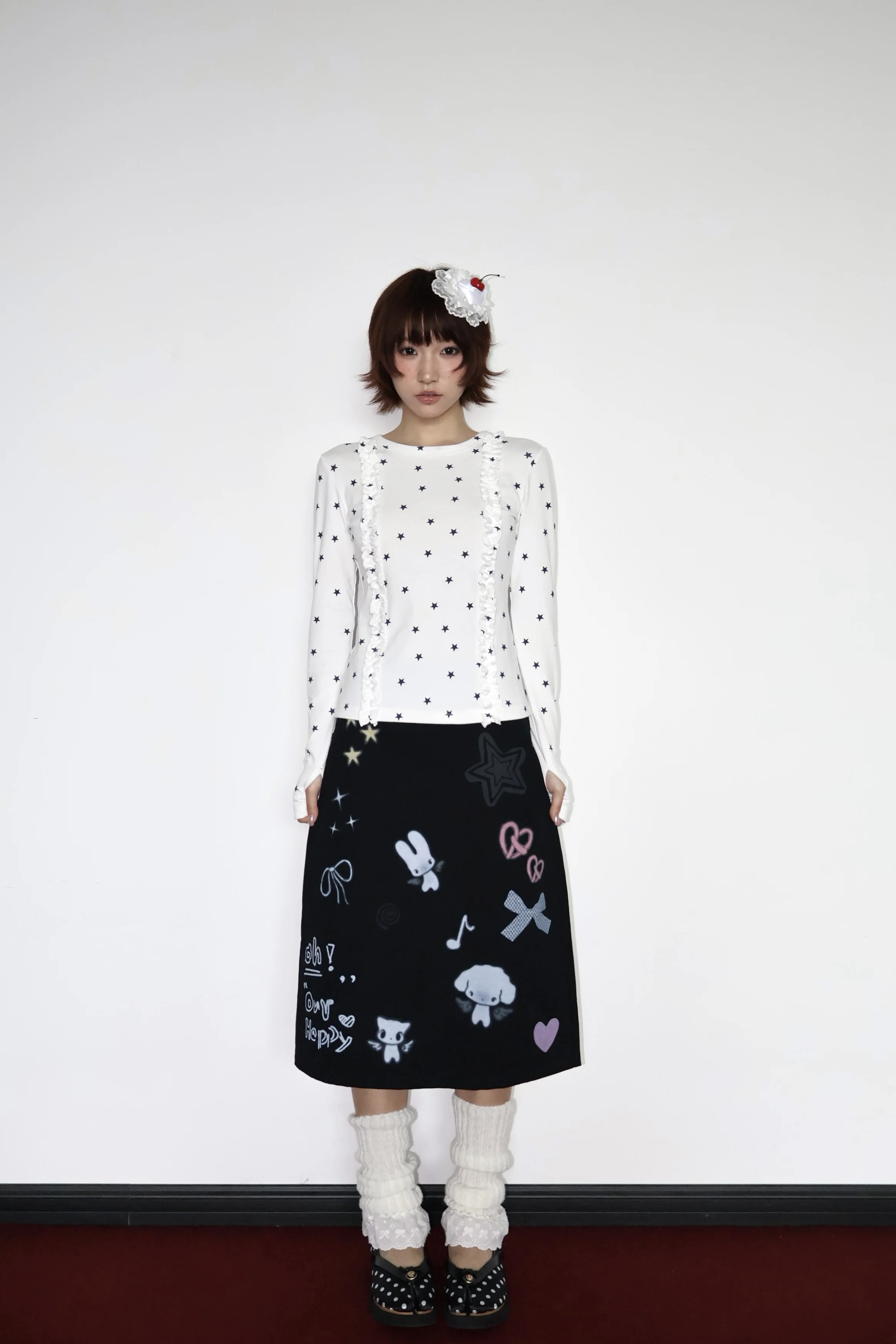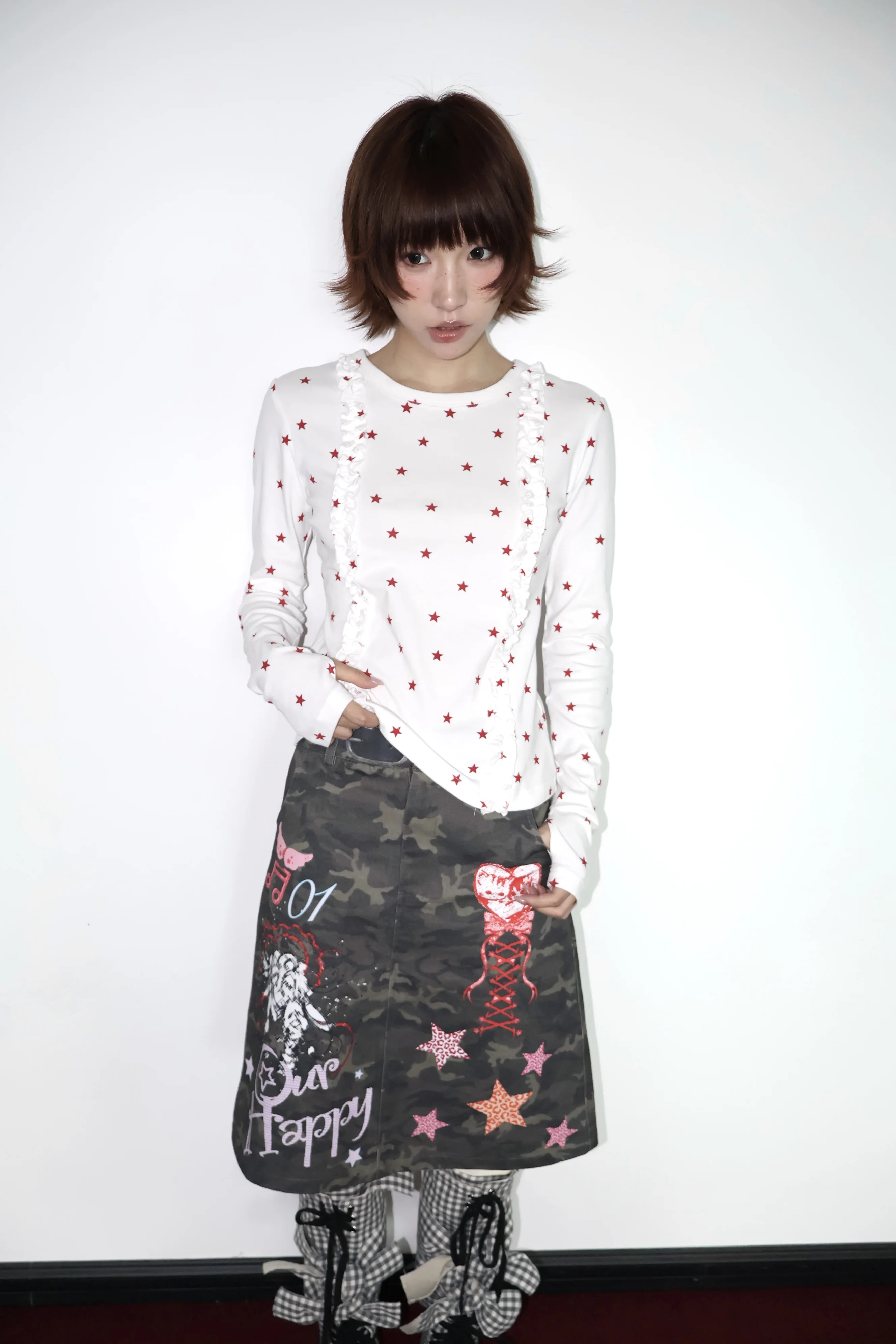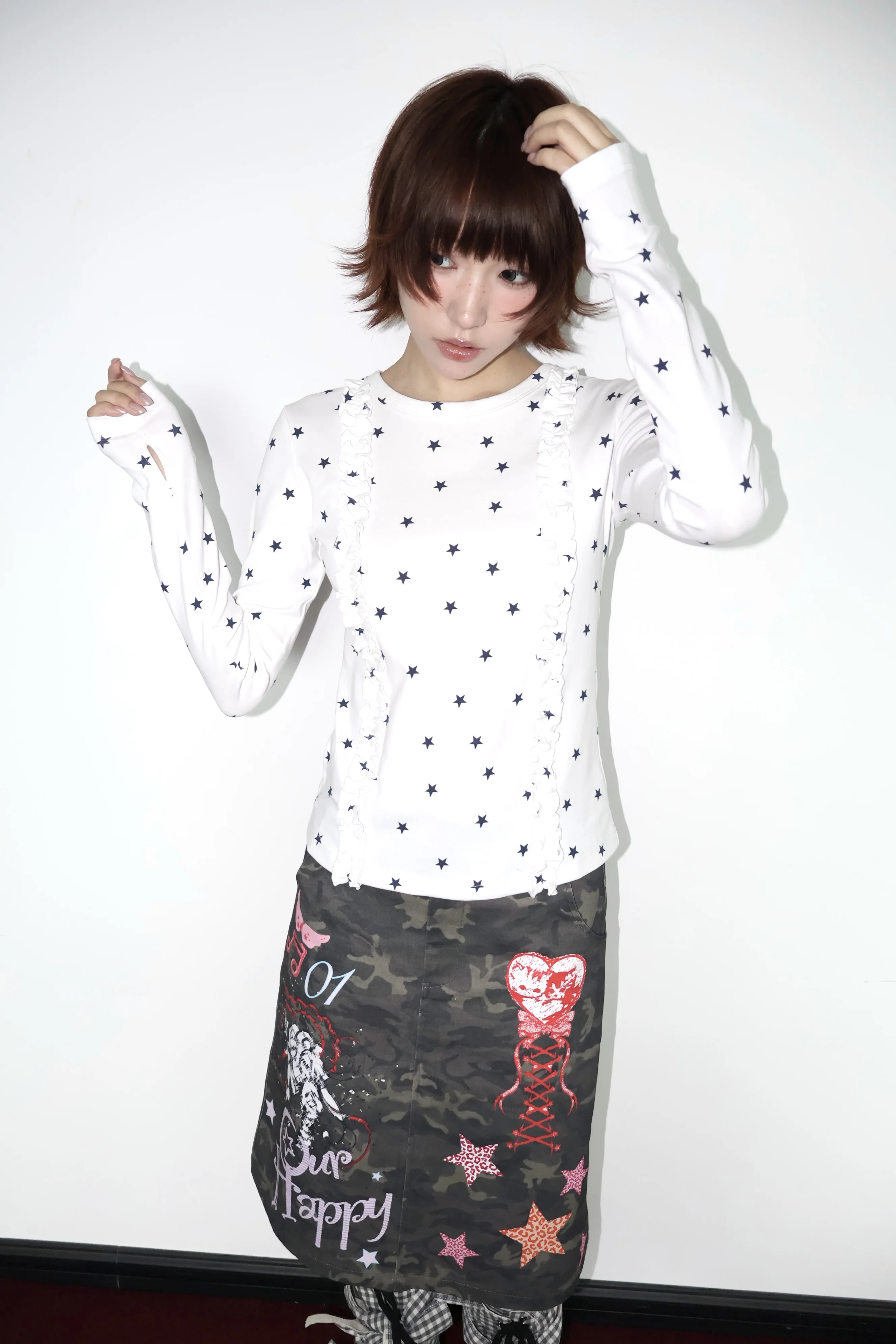 تي شيرت نسائي Genayooa Y2k Aesthetic بأكمام طويلة مطبوع عليه نجوم ورسومات جرافيكية، تي شيرت قطني ياباني من العقد الأول من القرن الحادي والعشرين، تي شيرتات عالية الجودة