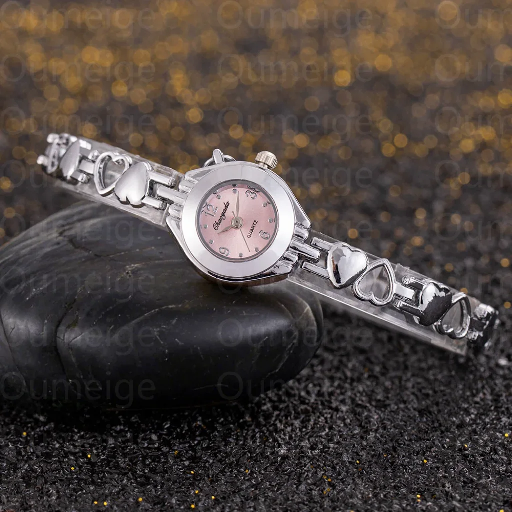 سوار أنيق وعصري من الذهب الوردي والفولاذ، مصنوع من الكوارتز، للنساء