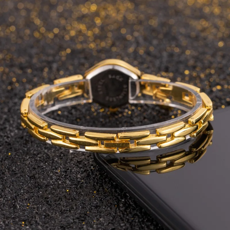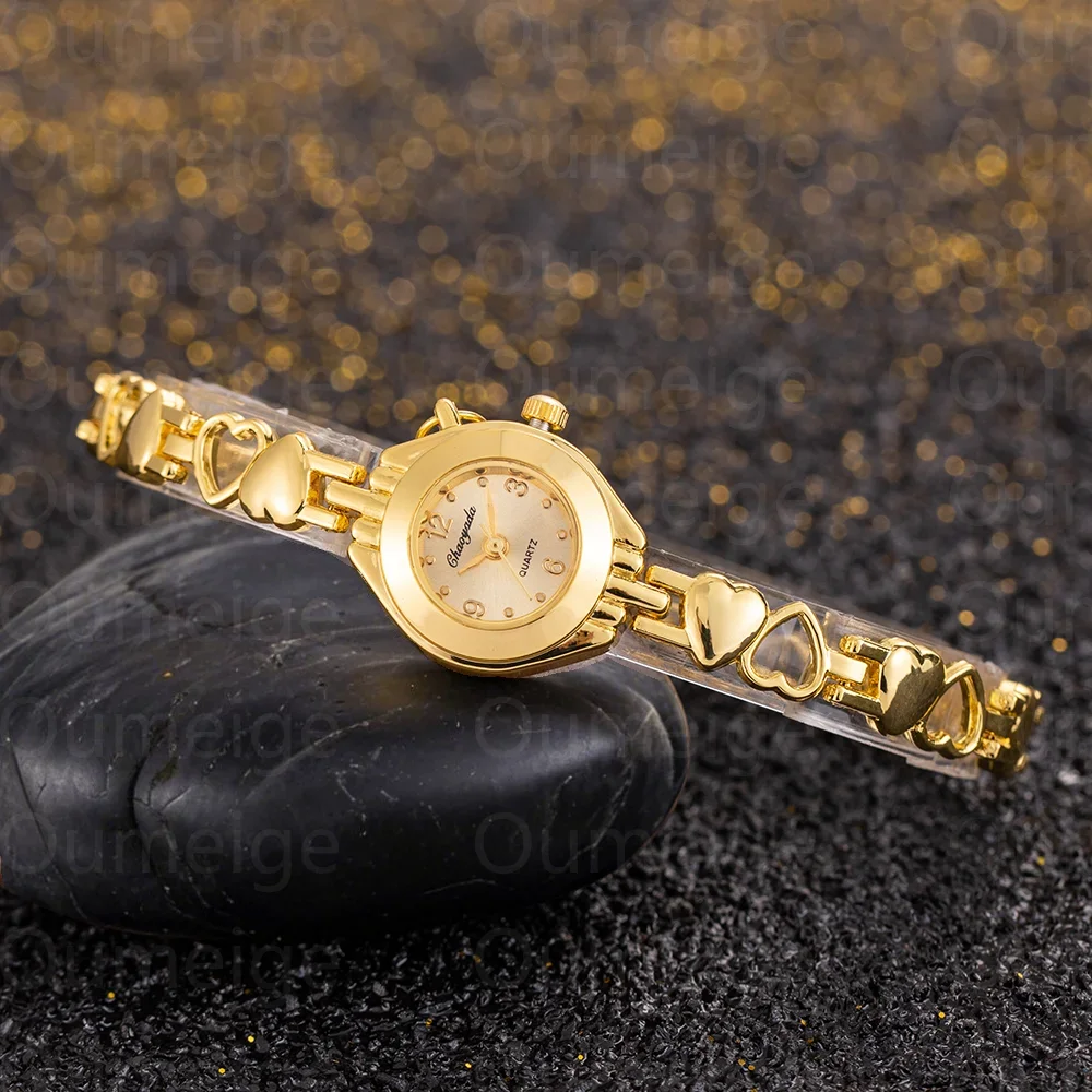 ساعة يد نسائية فاخرة بسوار ذهبي، مينا صغير، كوارتز، ساعة أنيقة للنساء، هدية عصرية.
