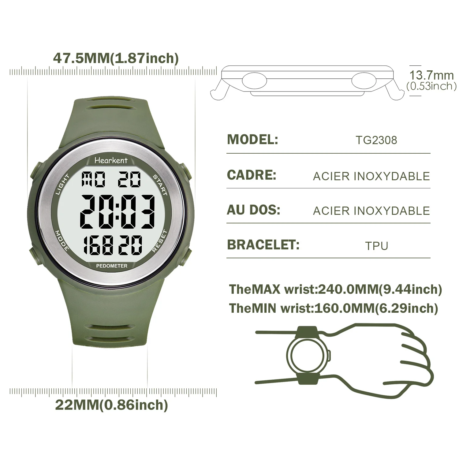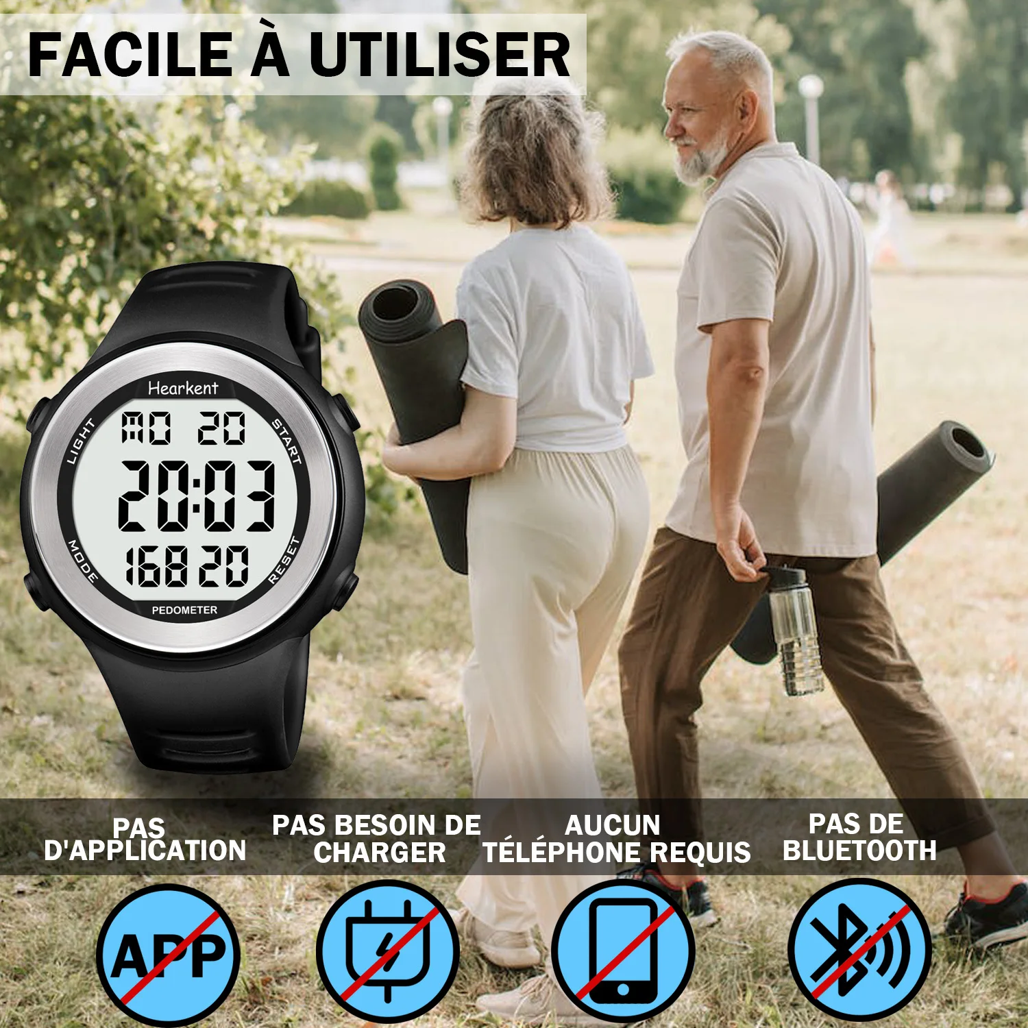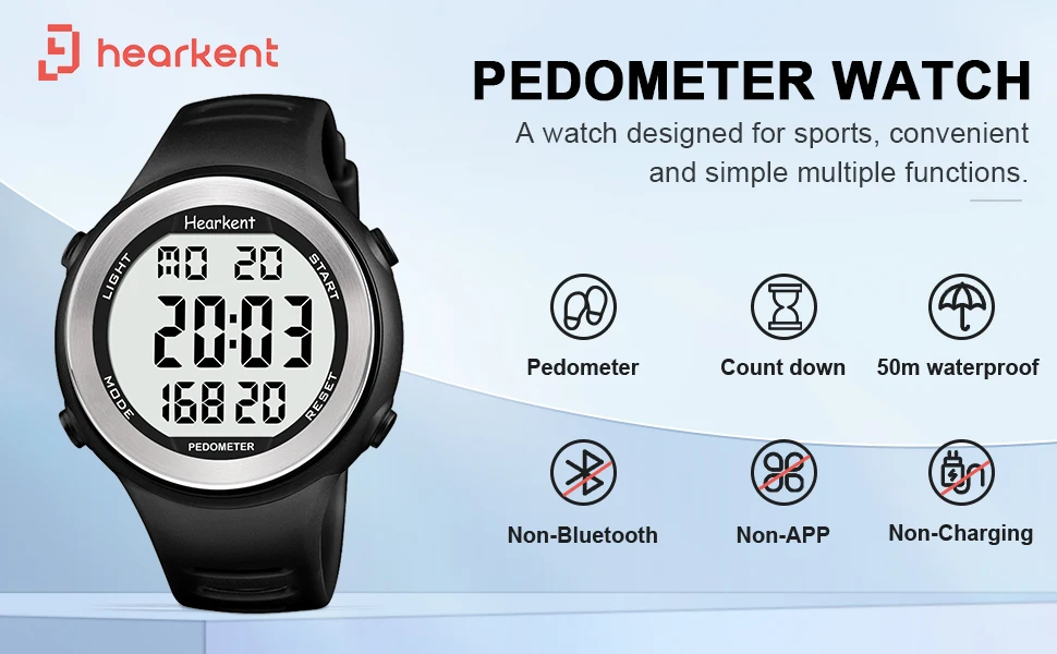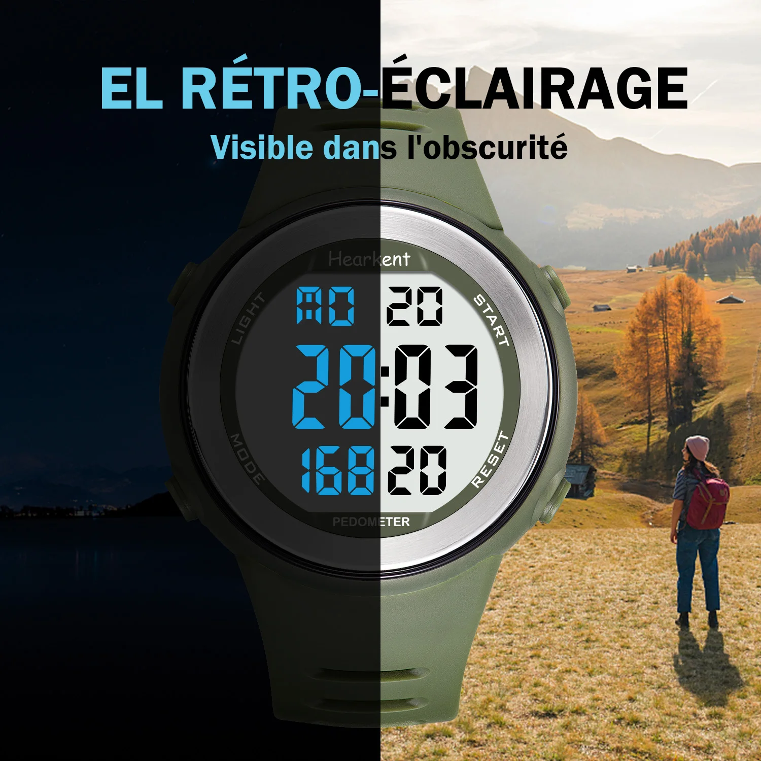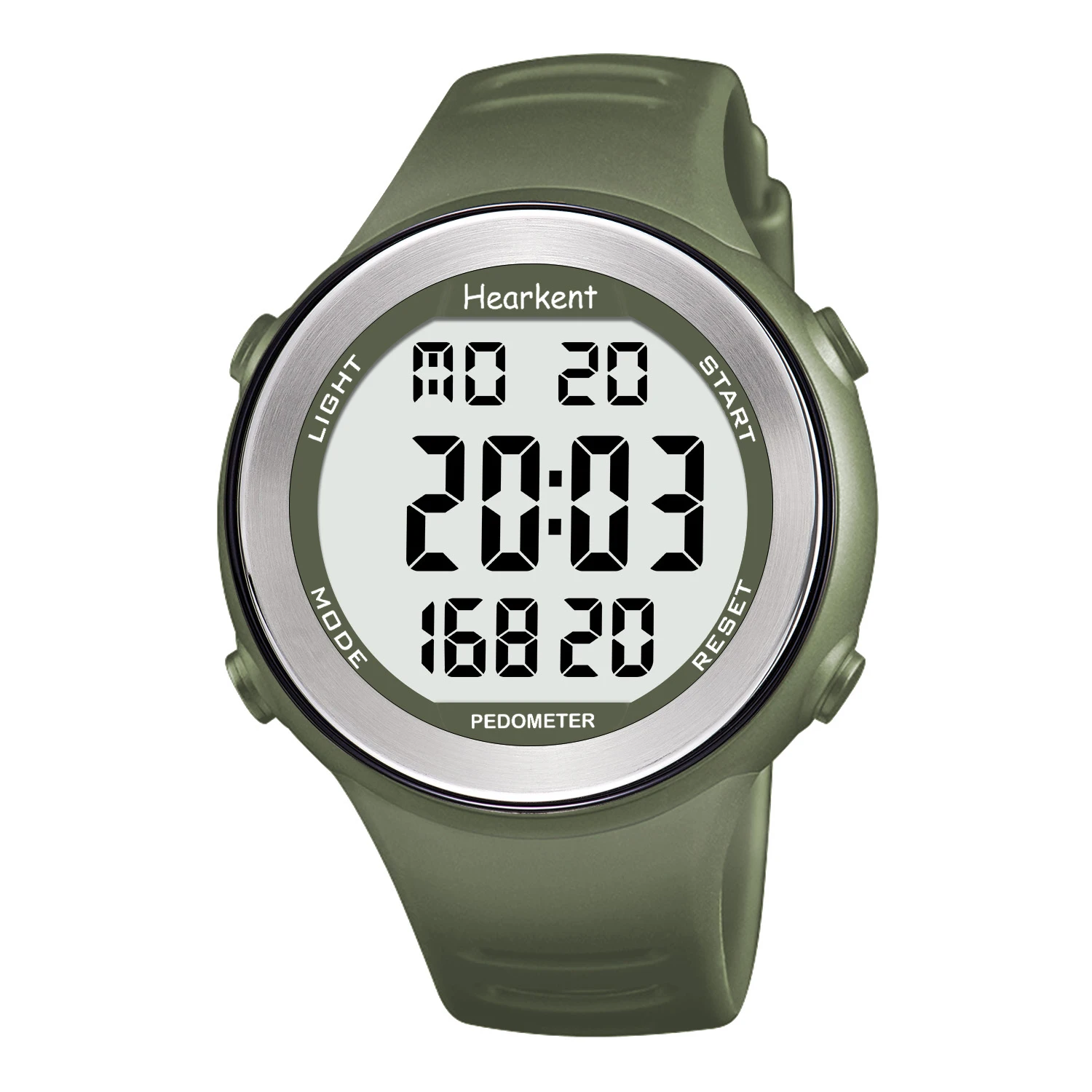 ساعة Hearkent Pedometer للرجال مقاومة للماء وعداد الخطوات وتتبع السعرات الحرارية للنساء بشاشة عرض خلفية وعداد تنازلي ساعات رياضية رقمية