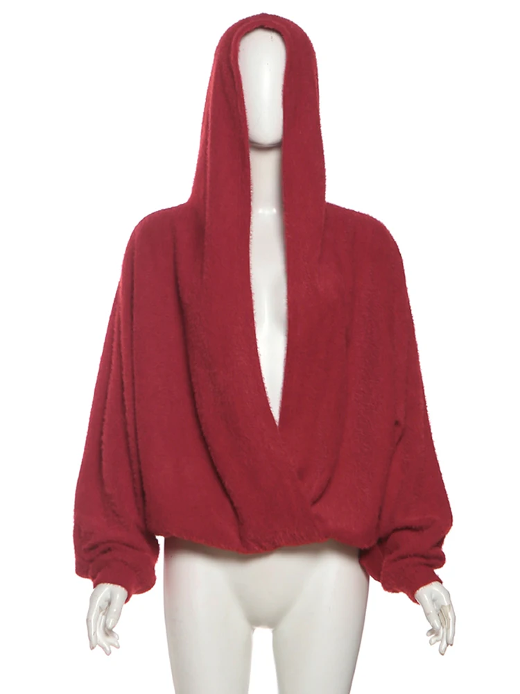تي شيرتات Kliou الكاجوال بغطاء للرأس للنساء، موضة الخريف، رقبة منخفضة وأكمام طويلة، موضة الشارع، تصميم متعدد الاستخدامات، بلوزات أنيقة من الكروشيه