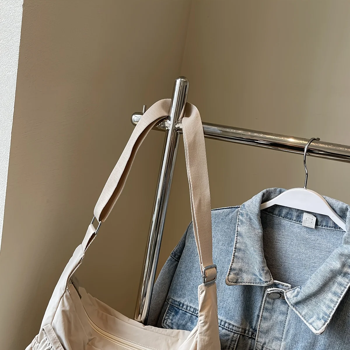 أضفي لمسة من الأناقة البسيطة إلى إطلالتك اليومية مع حقيبة الكتف المصنوعة من النايلون باللون الوردي الفاتح. إنها ليست مجرد حقيبة، بل لمسة أنيقة تجمع بين العملية والجاذبية!