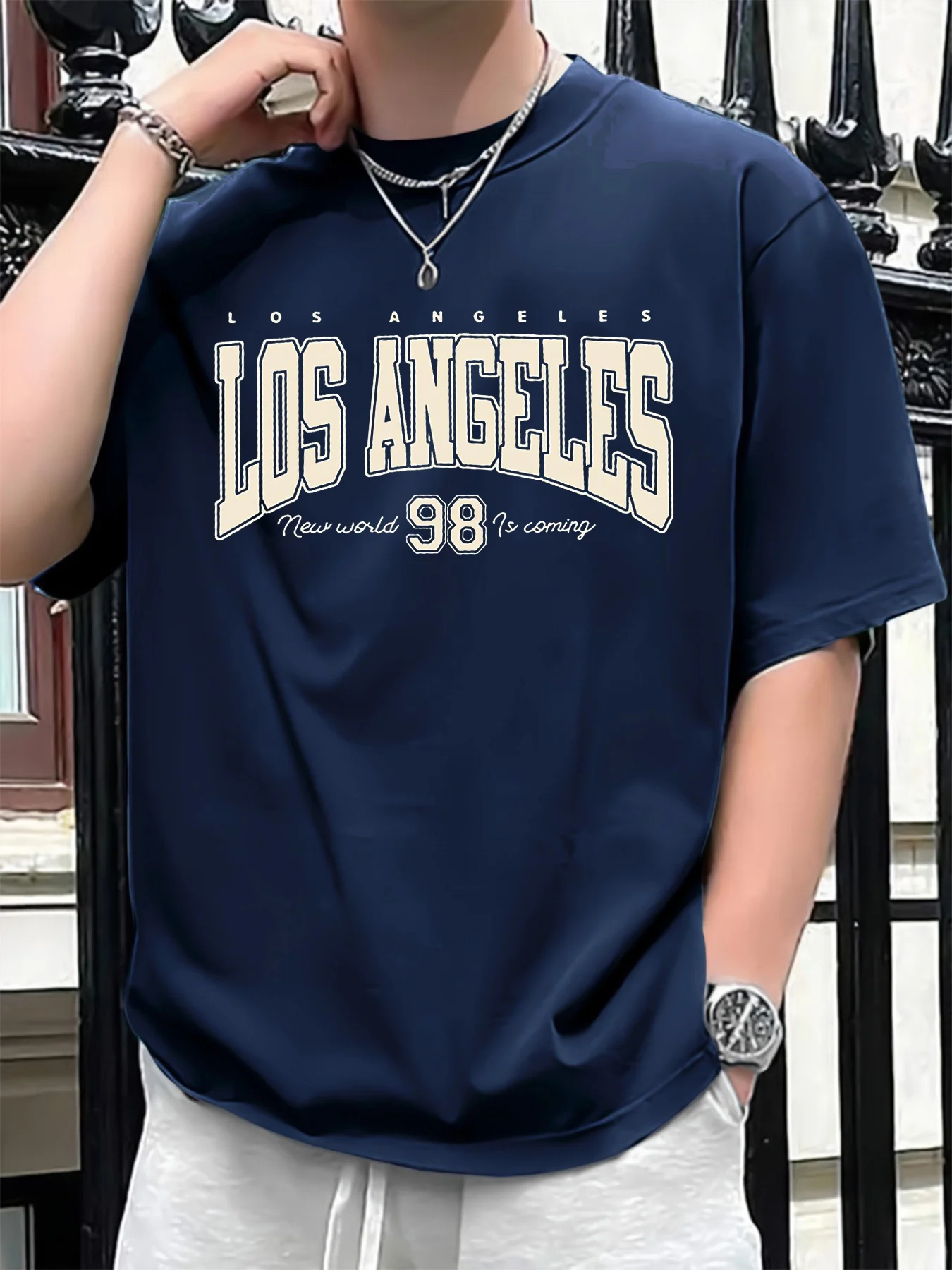 Men's summer 100 cotton fashionable casual loose plus size Los Angeles 98 printed sports round neck short sleeved T-shirt top