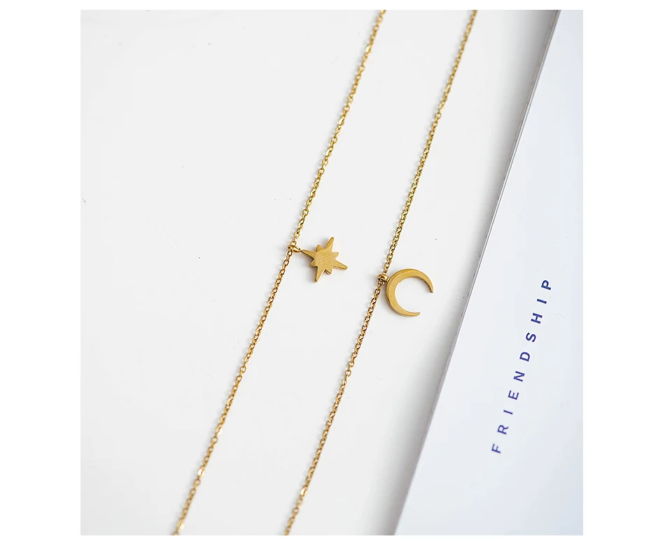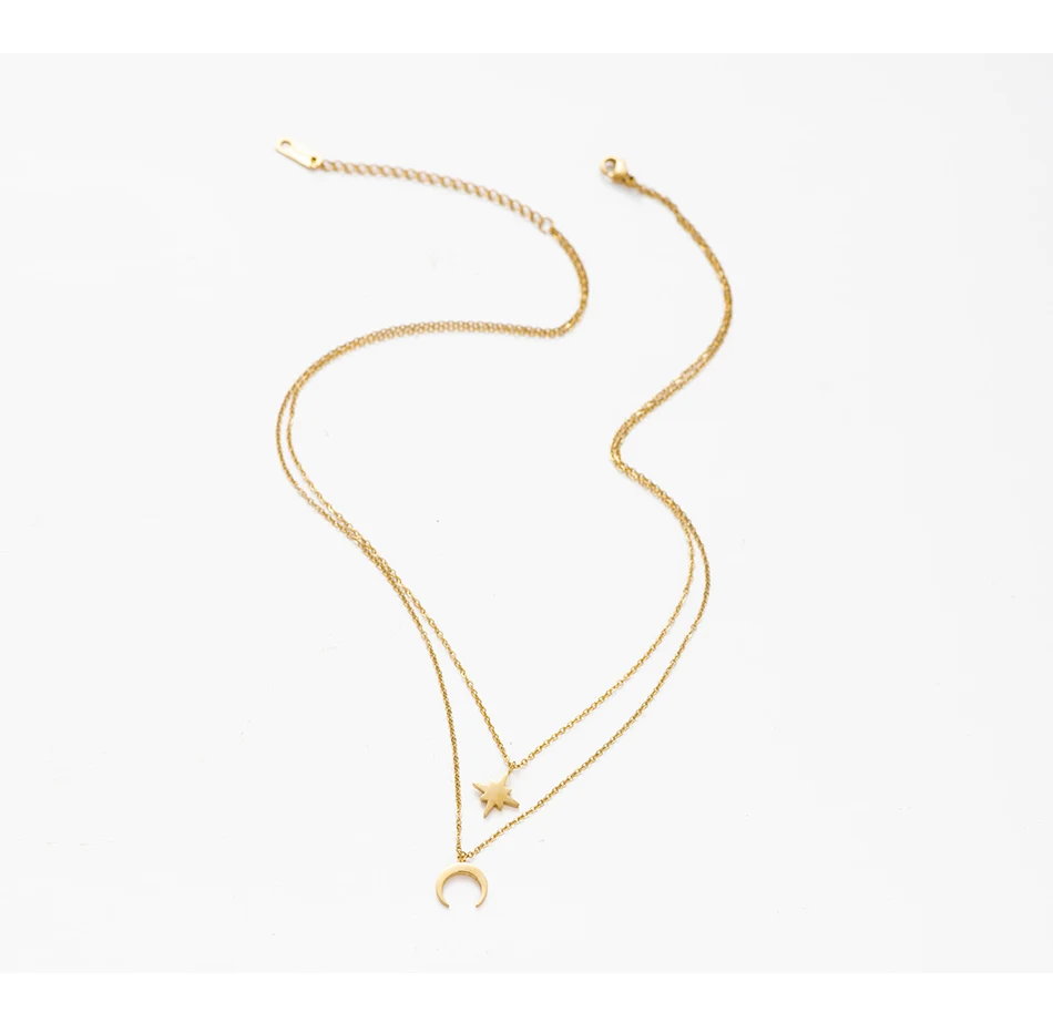قلادة متعددة الطبقات على شكل نجمة قمرية للنساء والفتيات، قلادات كنزة مطلية بالذهب، مصنوعة من الفولاذ المقاوم للصدأ، مجوهرات عصرية، هدية
