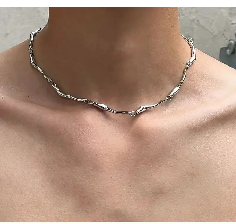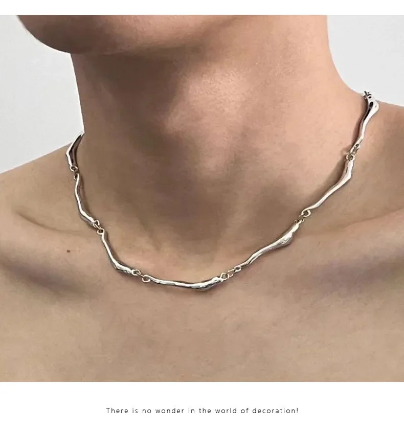 قلادة جديدة للرجال على شكل موجة غير منتظمة من الفولاذ المقاوم للصدأ على شكل سلسلة فيجارو كوبية للرجال والنساء مجوهرات