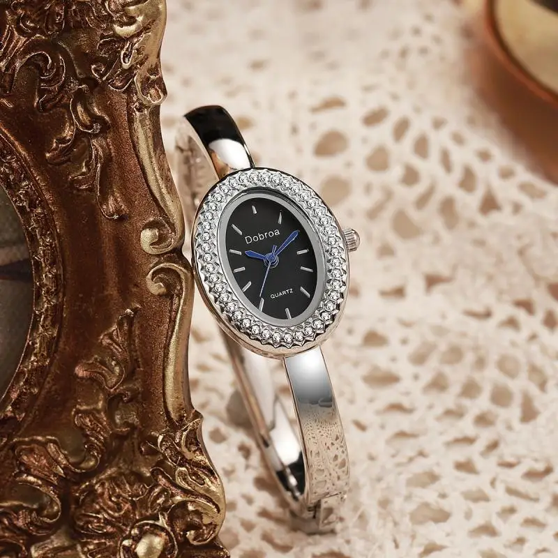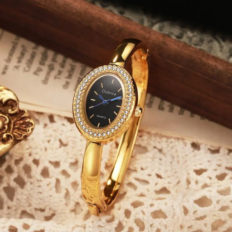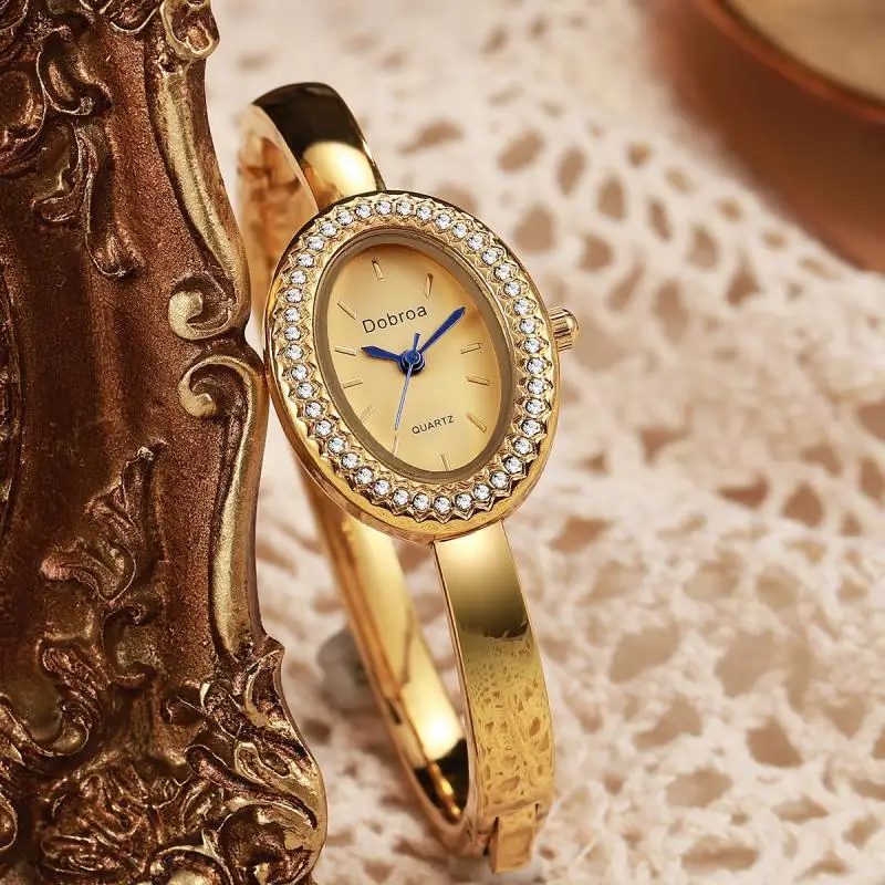 خاتم ألماس جديد من الذهب الوردي للسيدات، تصميم فاخر وأنيق، سوار بيضاوي الشكل مزين بأرقام رومانية