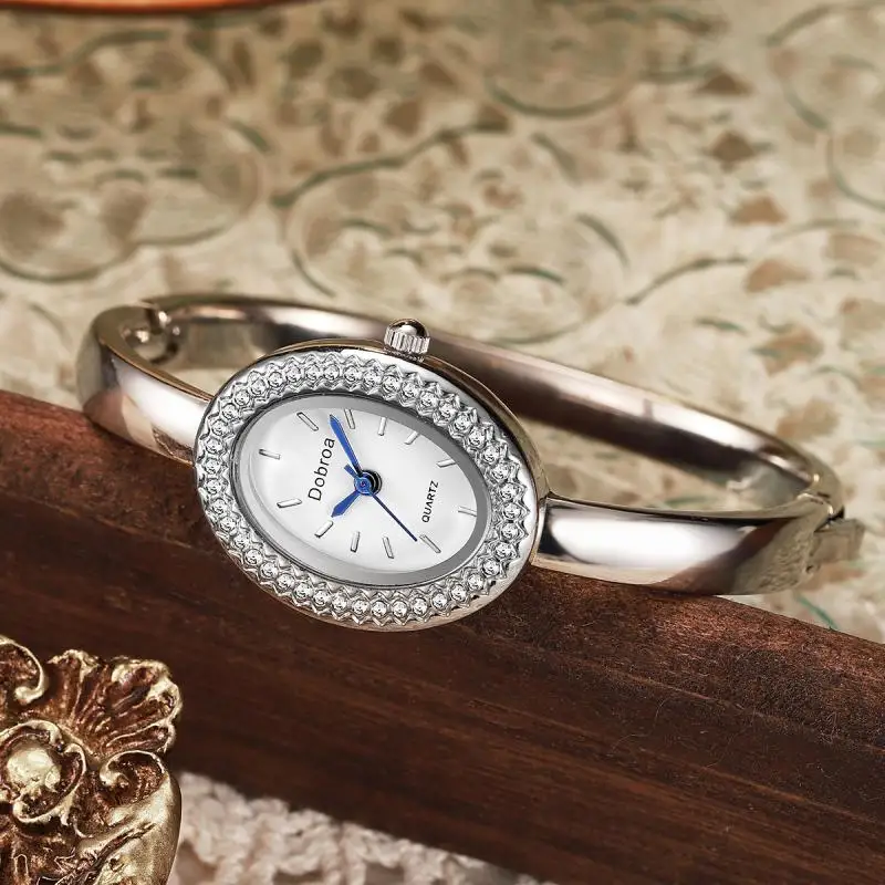 سوار أنيق وعصري من الذهب الوردي والفولاذ، مصنوع من الكوارتز، للنساء