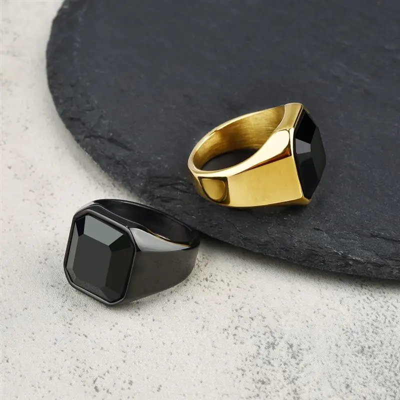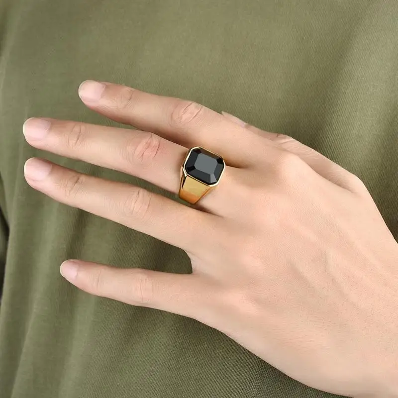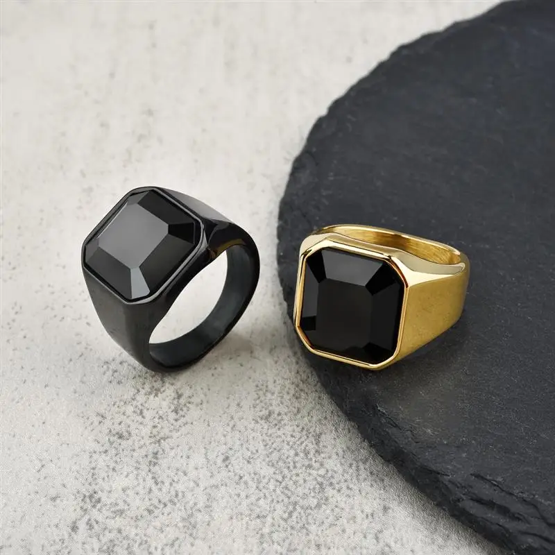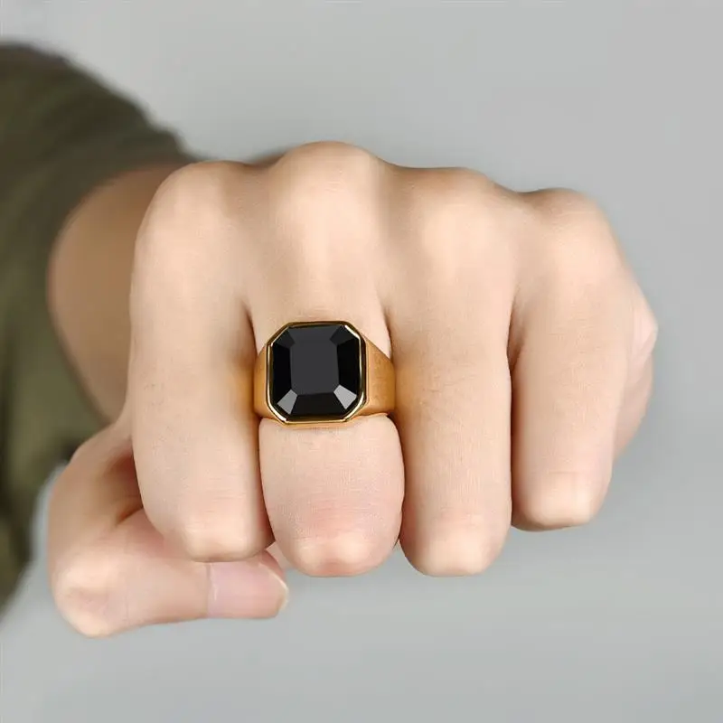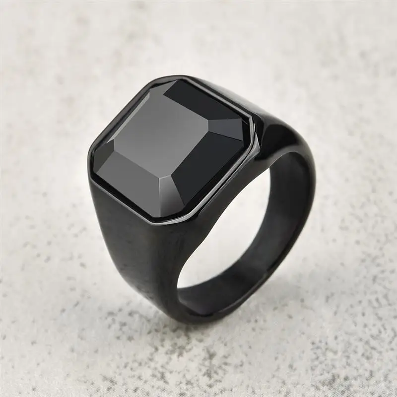 خاتم رجالي جديد بتصميم بانك روك، مصنوع من الفولاذ المقاوم للصدأ، مرصع بحجر الزركون المكعب الأسود، مناسب لحفلات الهيب هوب وحفلات الزفاف.