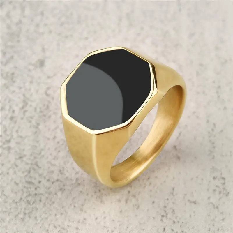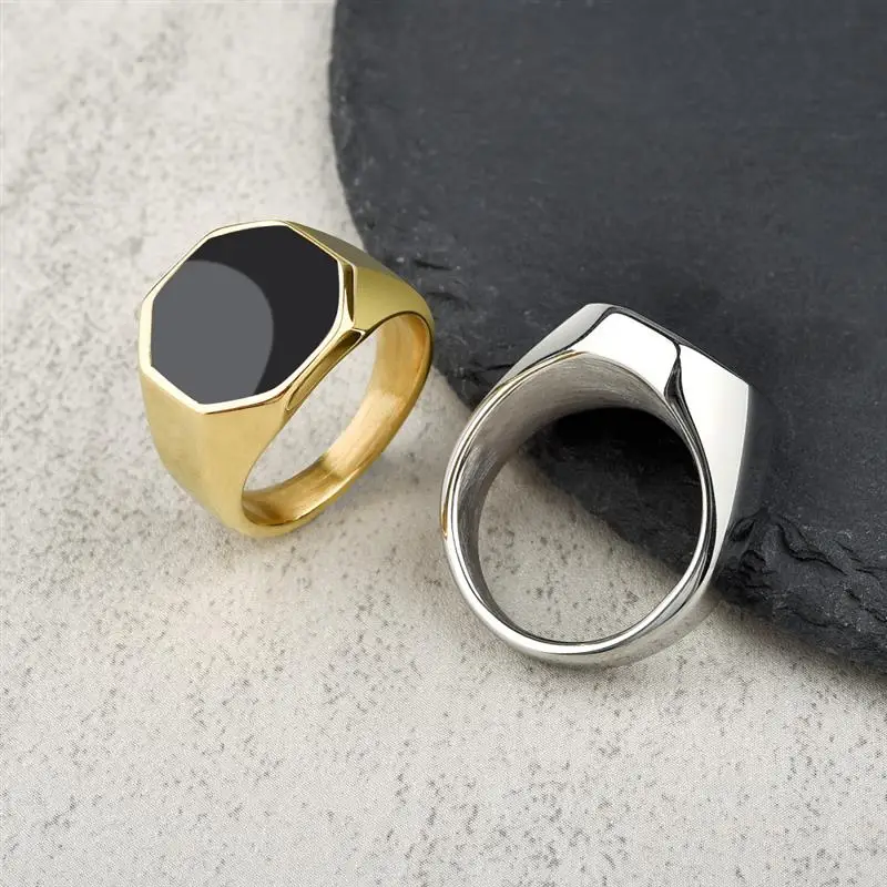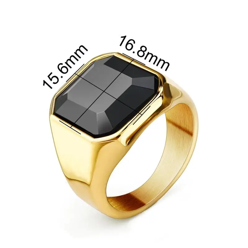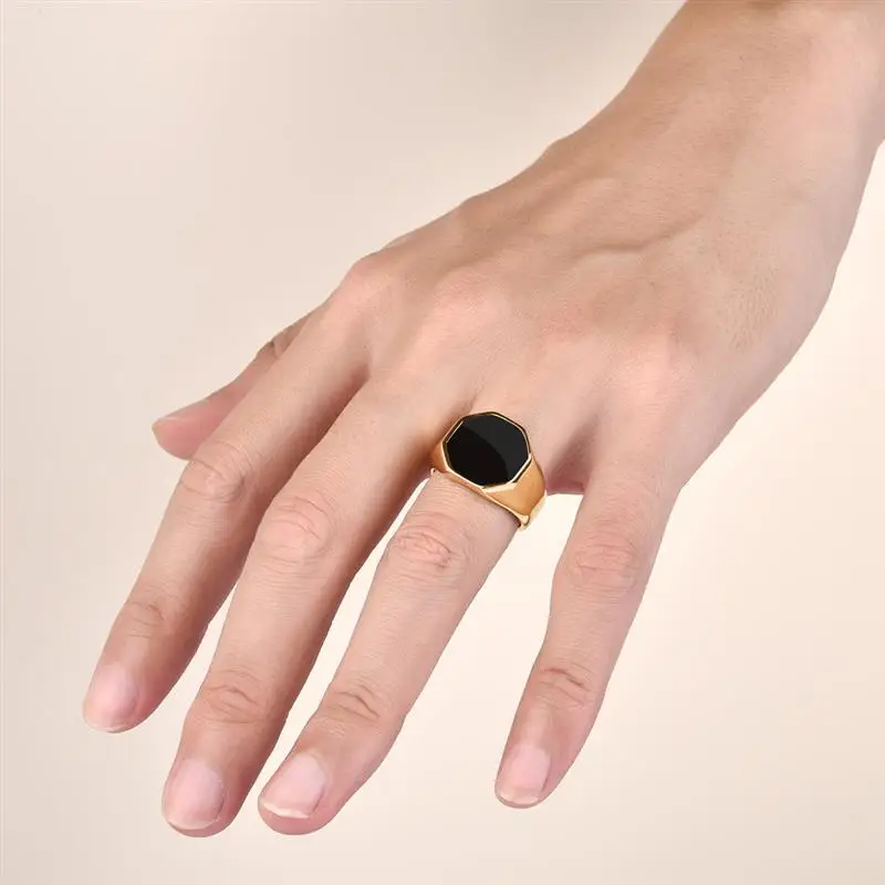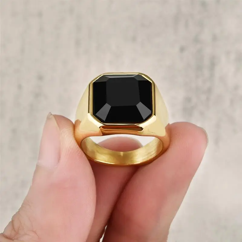 خاتم رجالي جديد بتصميم بانك روك، مصنوع من الفولاذ المقاوم للصدأ، مرصع بحجر الزركون المكعب الأسود، مناسب لحفلات الهيب هوب وحفلات الزفاف.