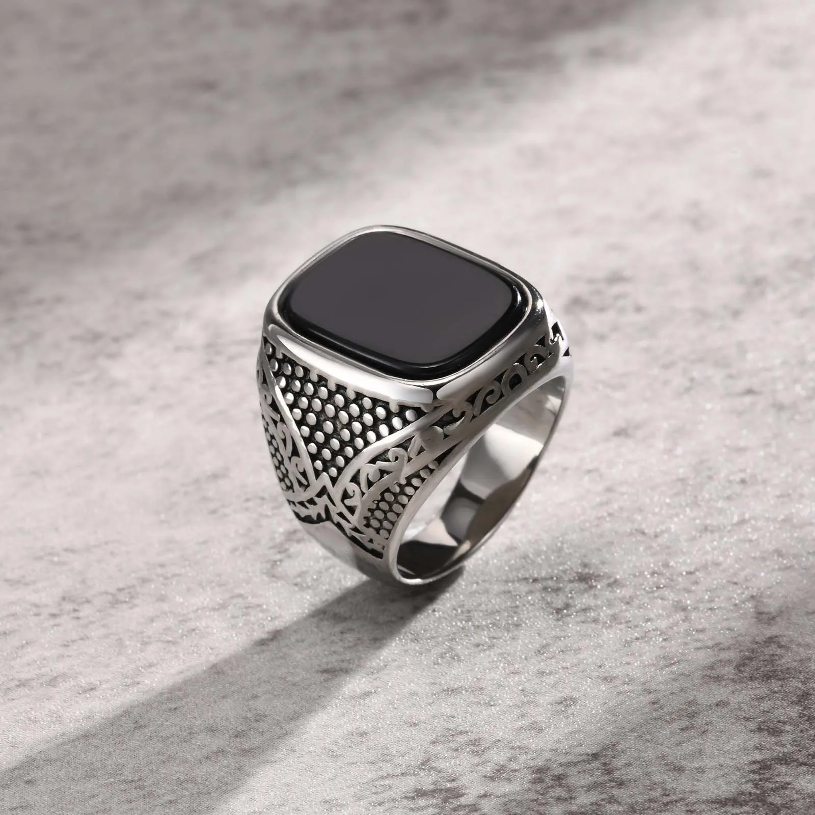 خواتم زفاف جديدة بتصميم روك بانك مرصعة بحجر العقيق الأسود، خواتم رجالية، هدايا مجوهرات للرجال