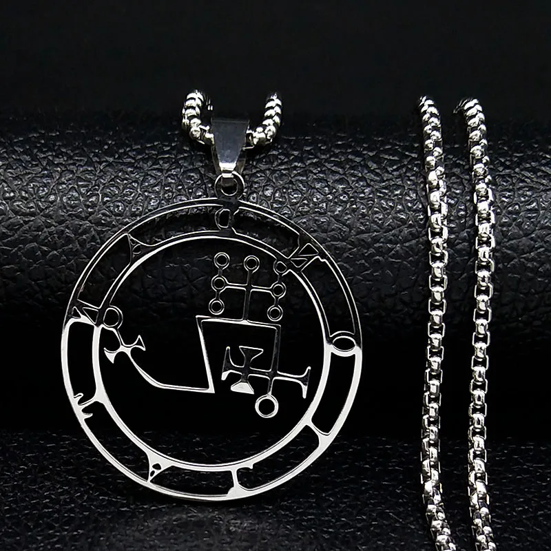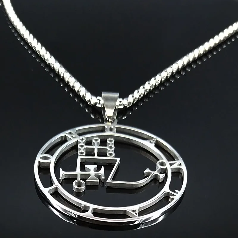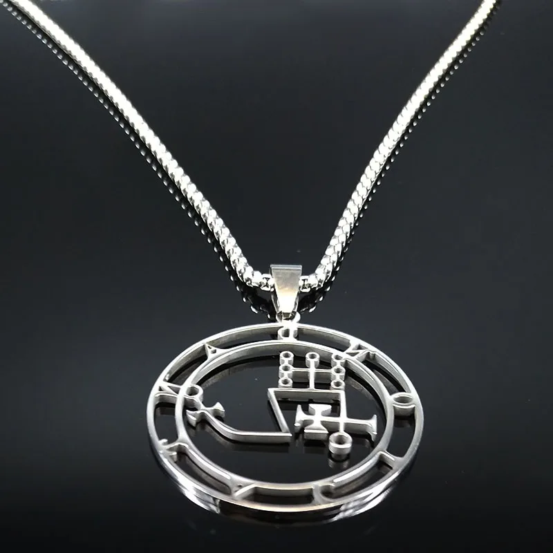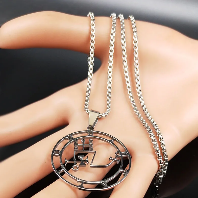 - قلادة سيجيل من الفولاذ المقاوم للصدأ 2021 باللون الفضي جوتيا ختم سليمان شيطان سيجيل الشيطان قلادات مجوهرات قلادات